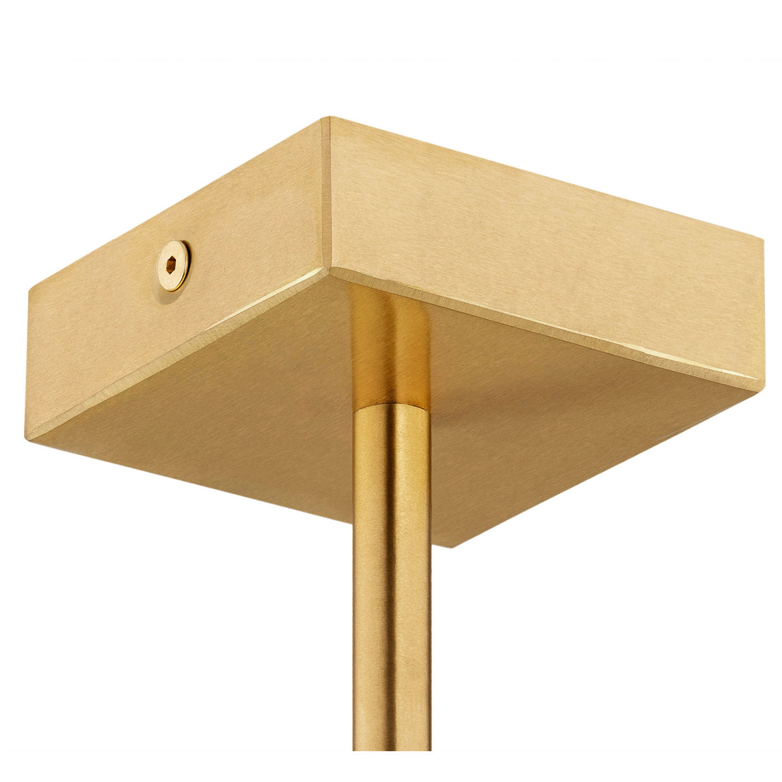 - The components are made of brass, which are finished in a brushed brass finish, including arms, lamp bulb holders, and ceiling mounting.