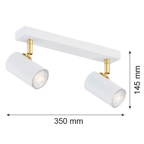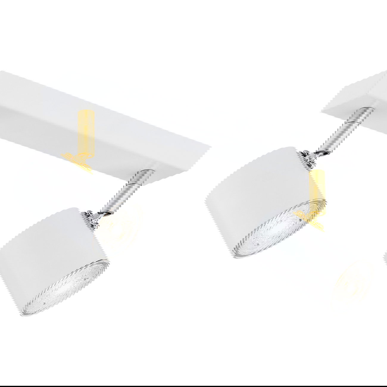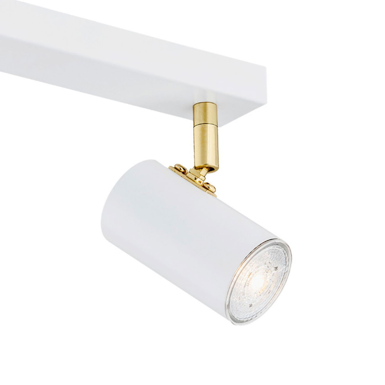 Agos 2 Light White Adjustable Ceiling Spotlight, Brass Rods, 35cm Width