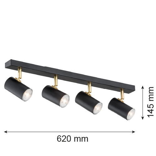 Agos 4 Light Adjustable Ceiling Spotlight, Black, Brass, 62cm Width