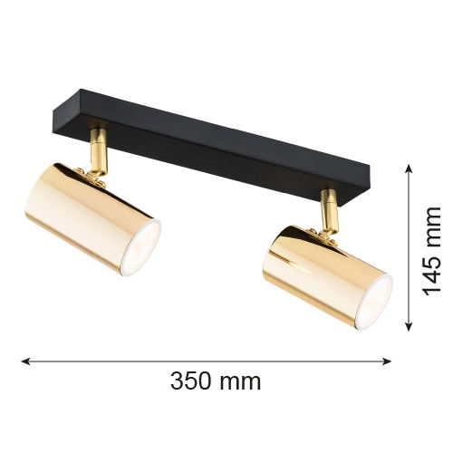 Agos Adjustable Ceiling Spotlight, 2 Lamp, Brass & Black, 35cm Wide