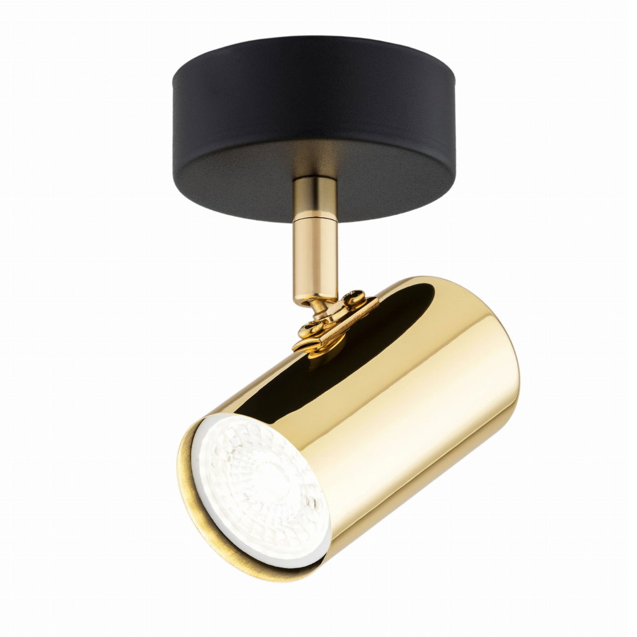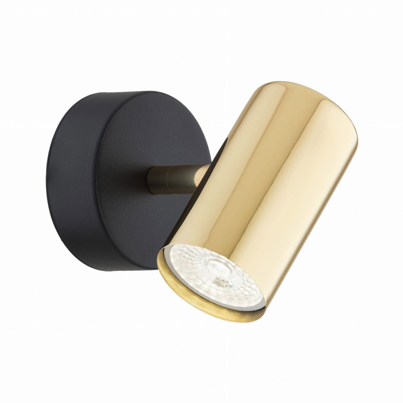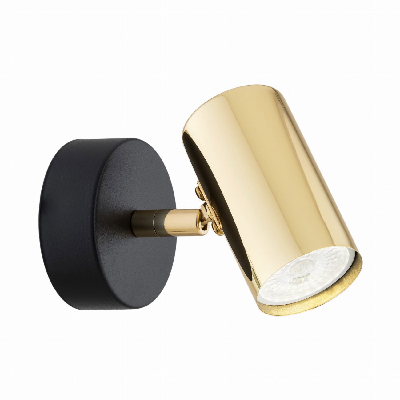 Agos Adjustable Wall/Ceiling Spotlight, 1 Lamp, Brass & Black, 8cm Wide