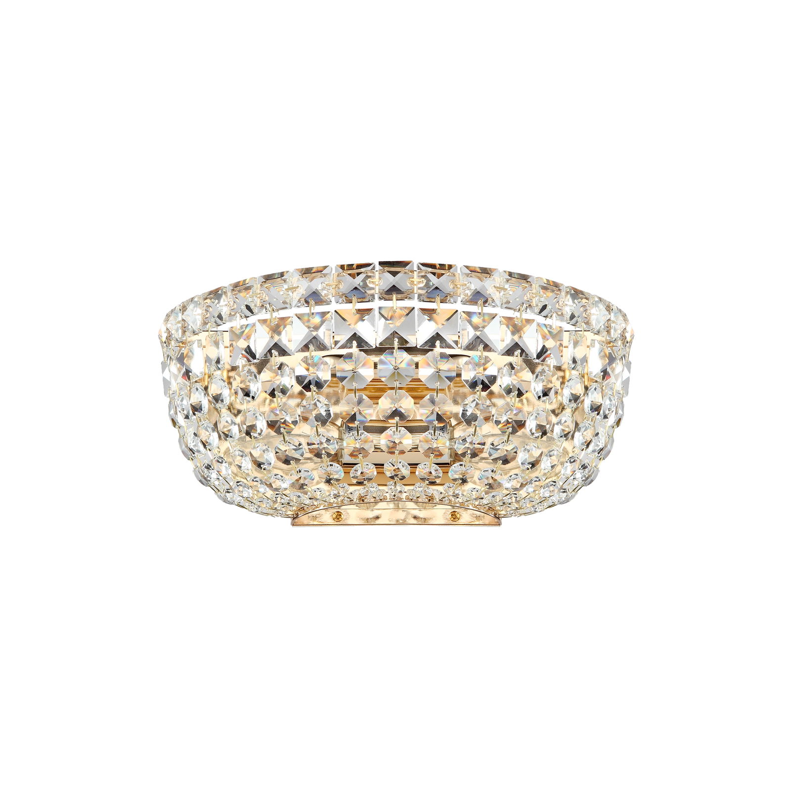 Basfor Gold Crystal Wall Light, 2 Lamp, Clear Glass, 25.5cm Wide