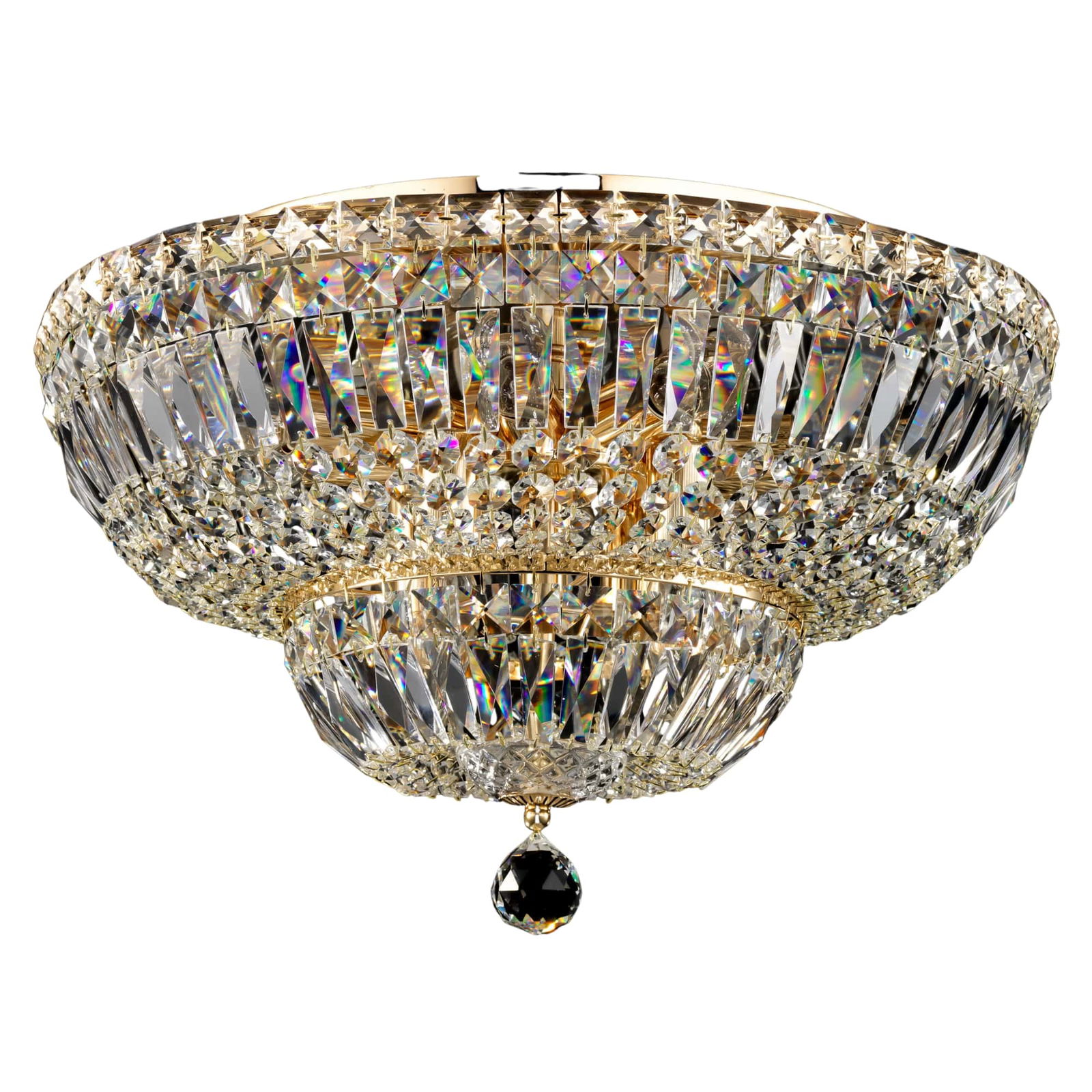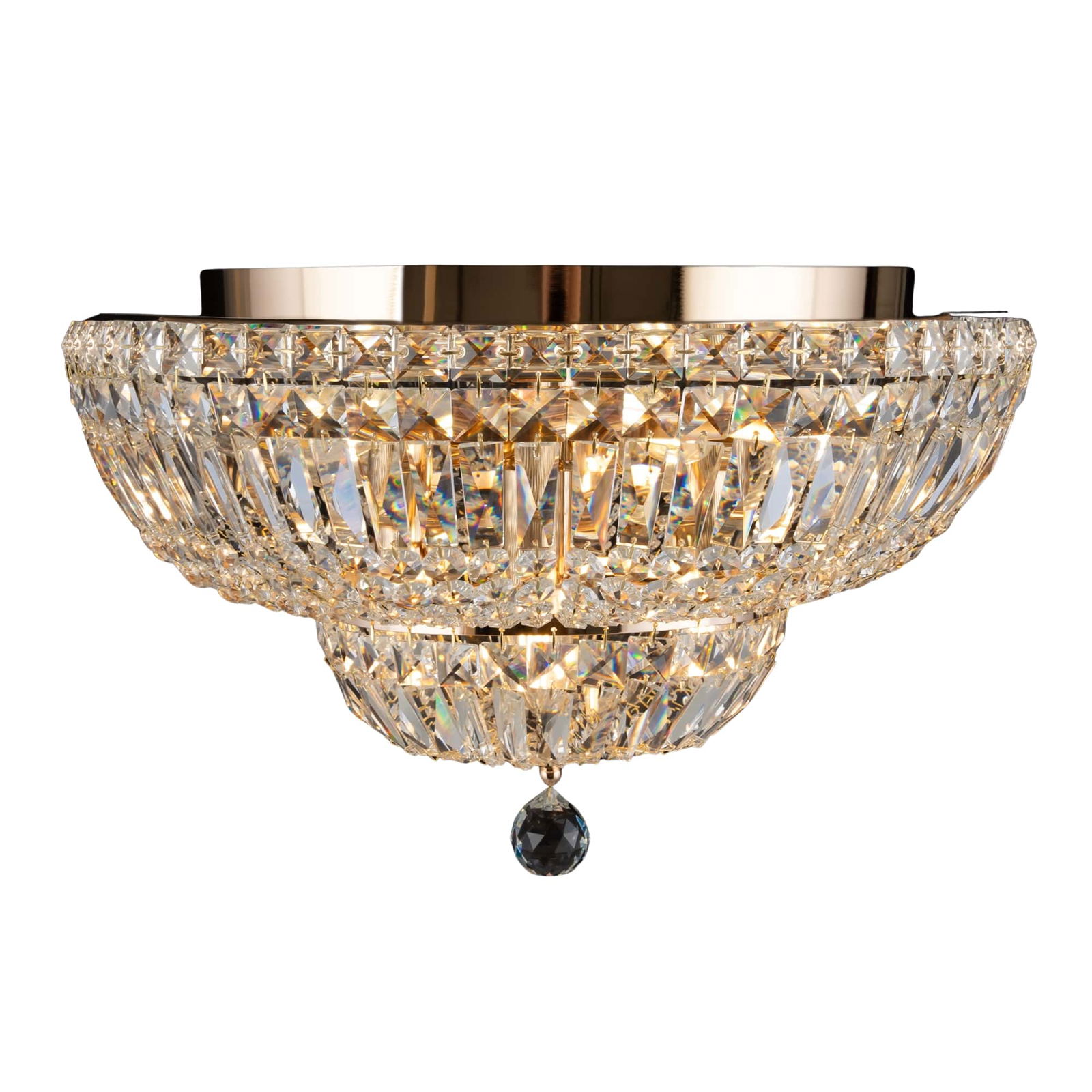 Basfor Tiered 12 Lamp, Crystal Flush Ceiling Light, Gold, 46cm Wide