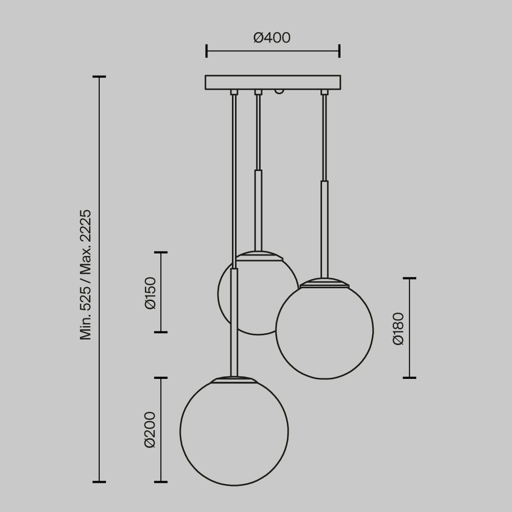 - Maximum drop is 222.5cm from the ceiling.