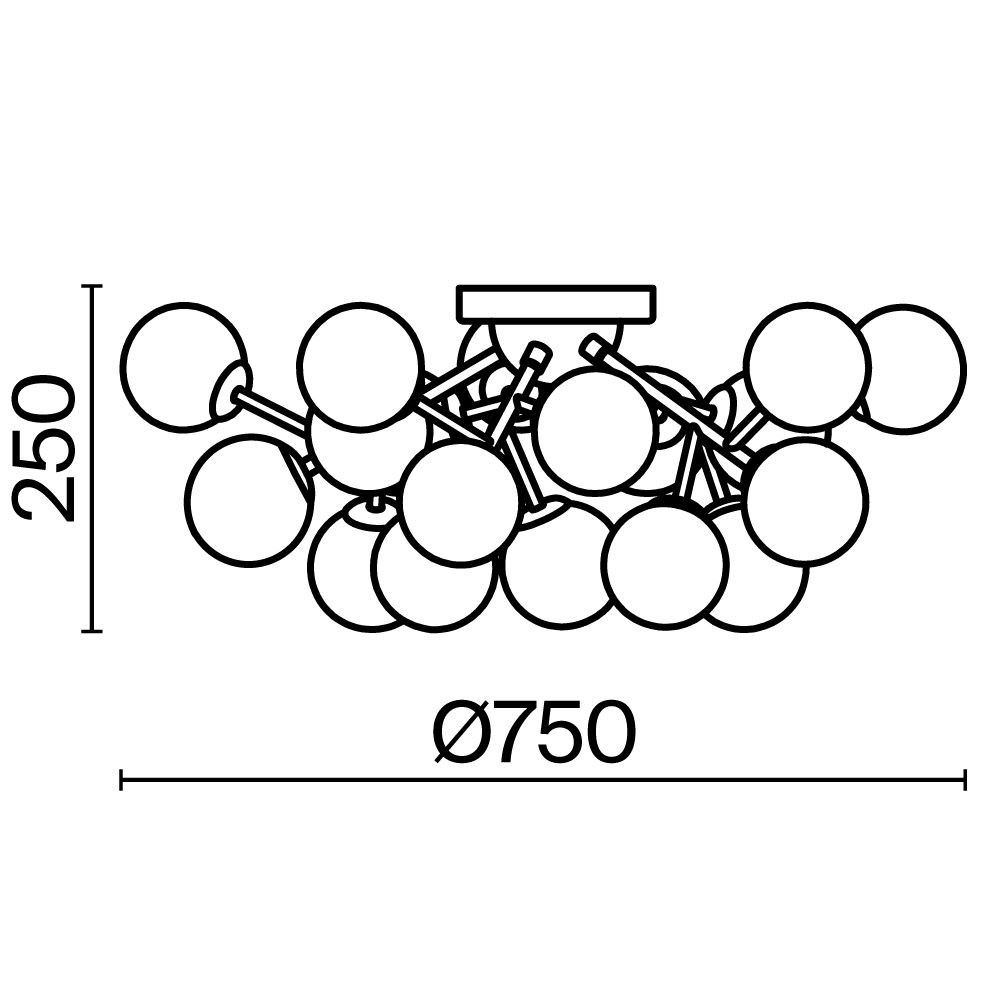 The Dallas 20 light gold ceiling lamp comes with twenty white glass globes and gold metal arms in an abstract shape on a semi flush design, which hangs down a total of 25cm from the ceiling.