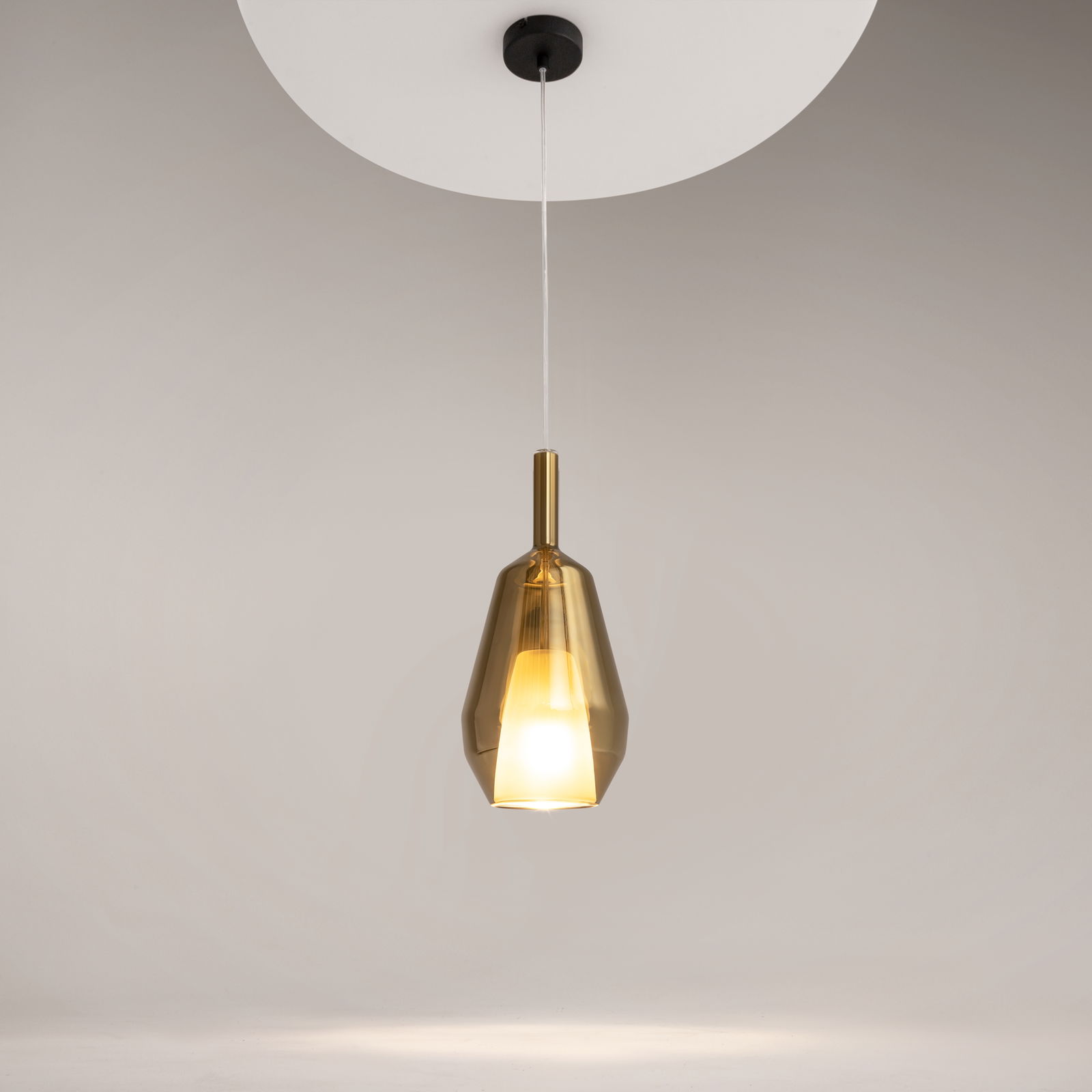 Duality Small Gold Pendant Light, Glass, Metal, 1 Lamp, 16cm Wide