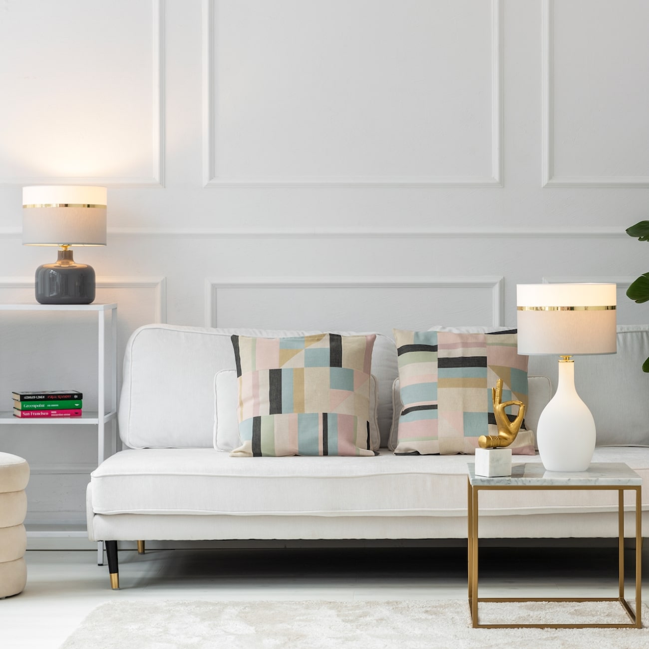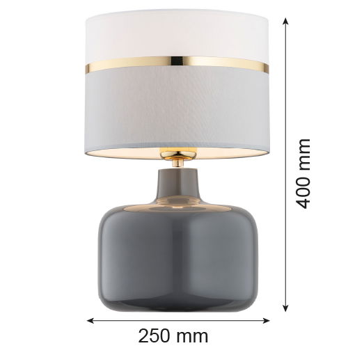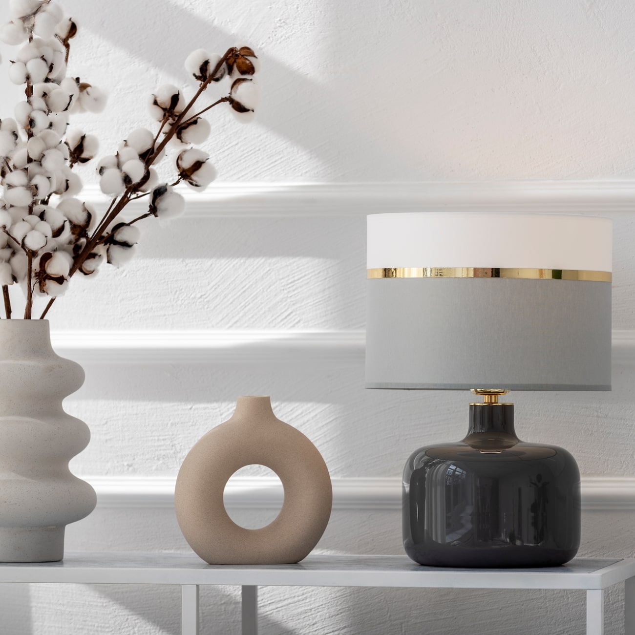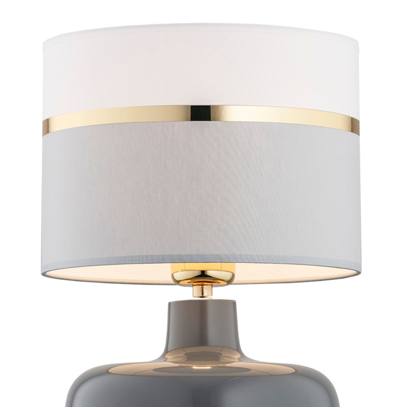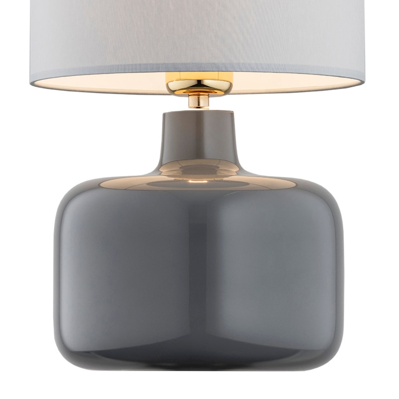 Eja Grey Table Lamp, White & Brass Lampshade, Glass, 25cm Wide