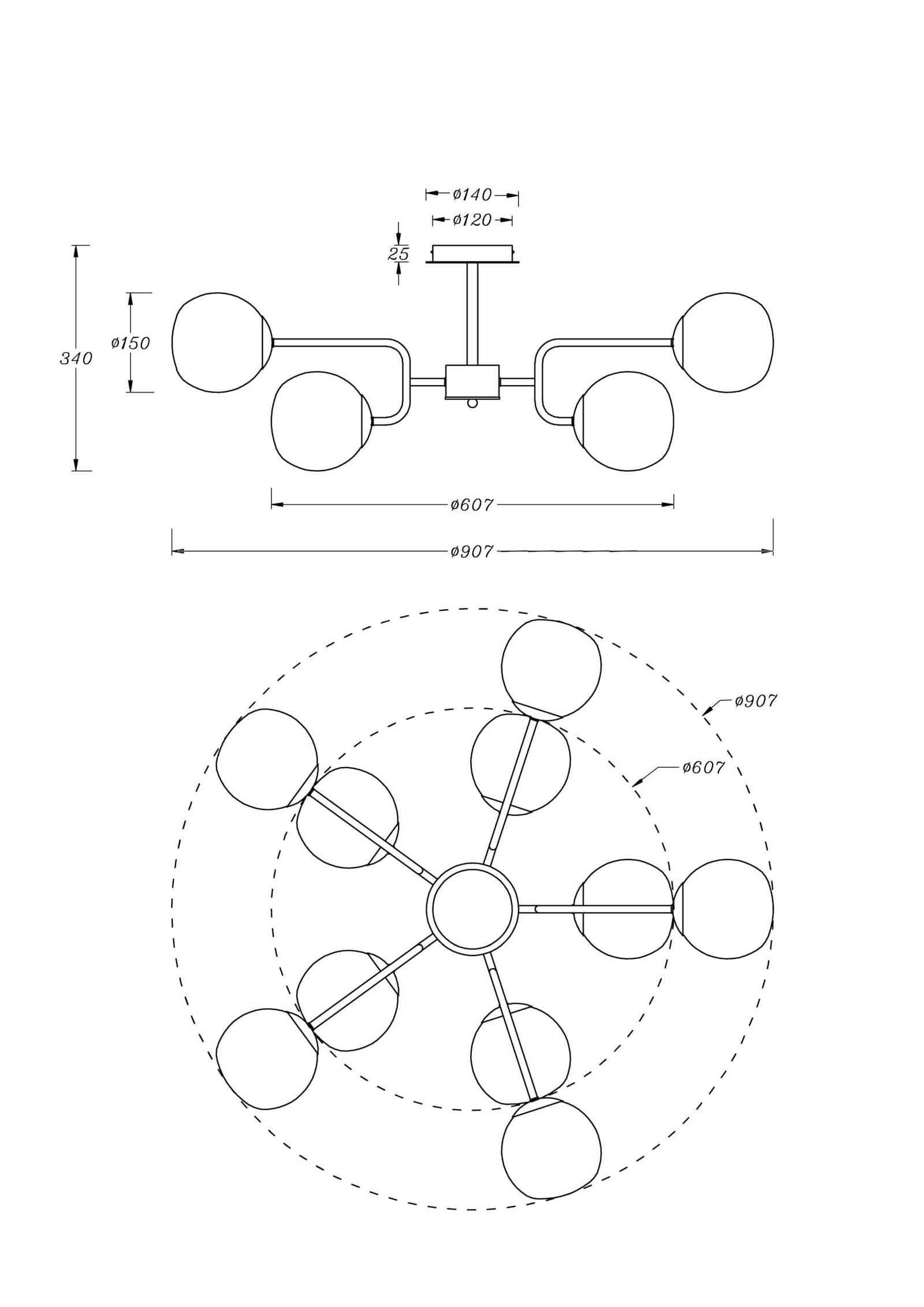 - The round ceiling plate is 12cm across and 2.5cm tall.