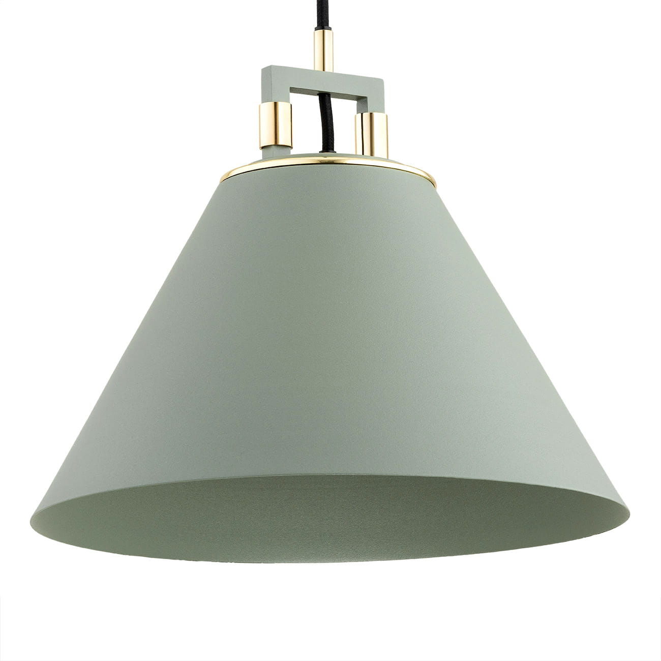 The Green Etro 3 Light Pendant Lamp has three conical shades in a sage green colour finish. Each shade tapers down from a brass collar and has a white finish on the inside of each shade.