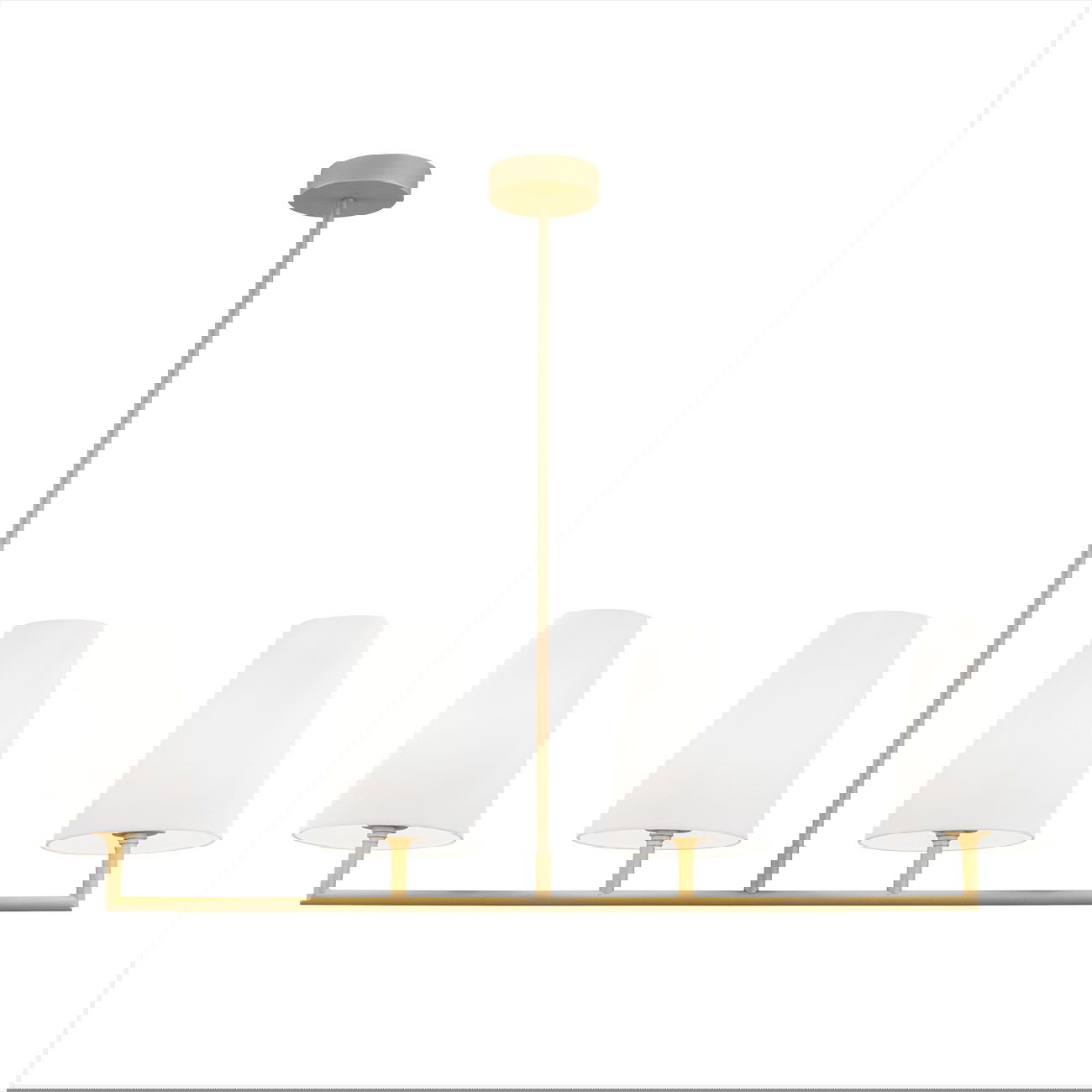Fiano Pendant Light, 4 Lamp Linear Frame, Gold, White Lampshades, 106cm