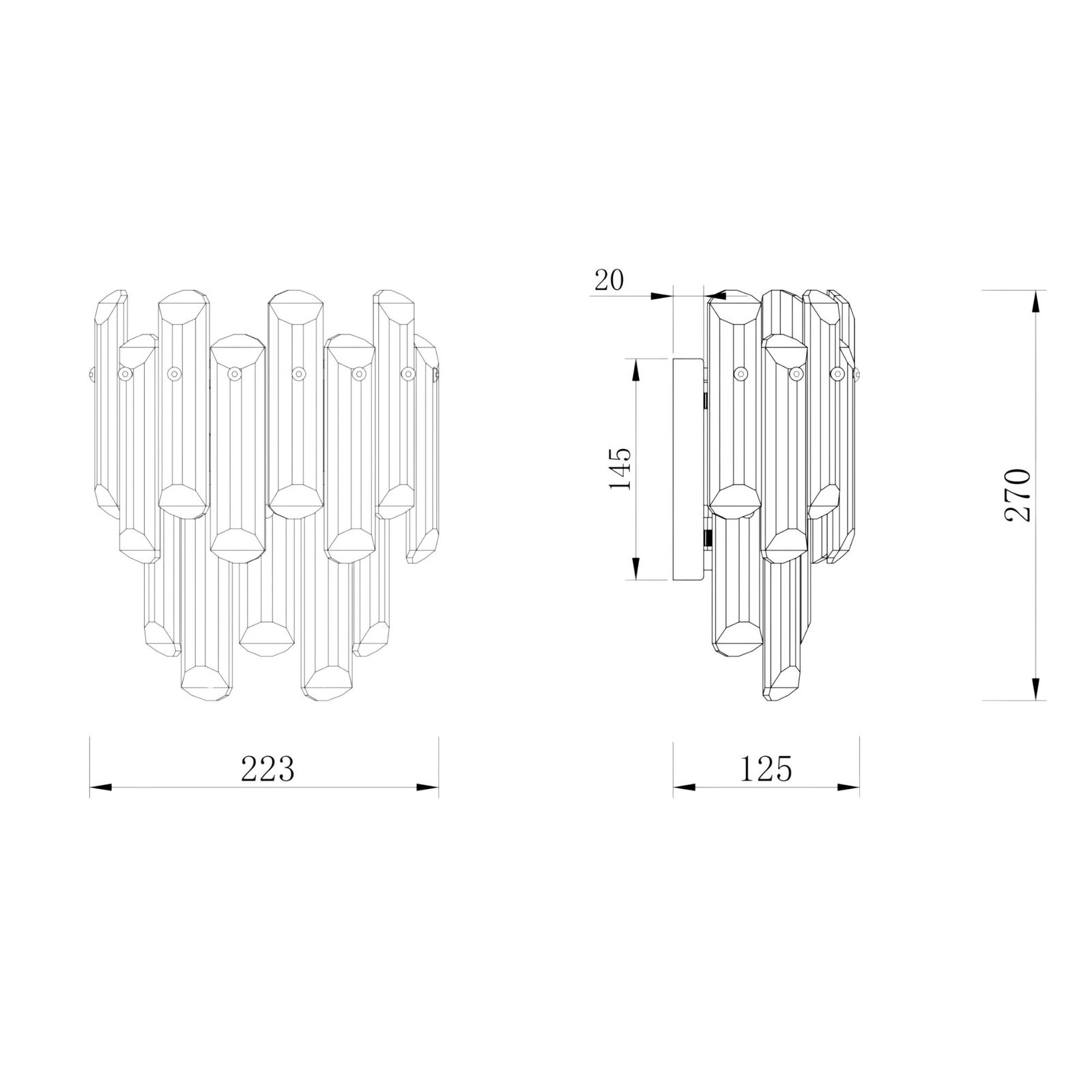 The Flare Wall Light comes with crystal glass tubes in two tiers around a gold frame. The Flare comes with two colours of cylinders in clear and smoked.