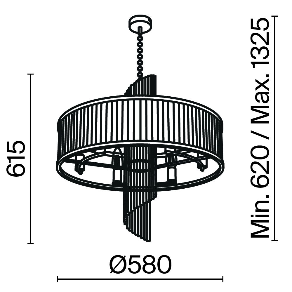 Diameter: 58cm, Minimum Height: 62cm, Maximum Height: 132.5cm