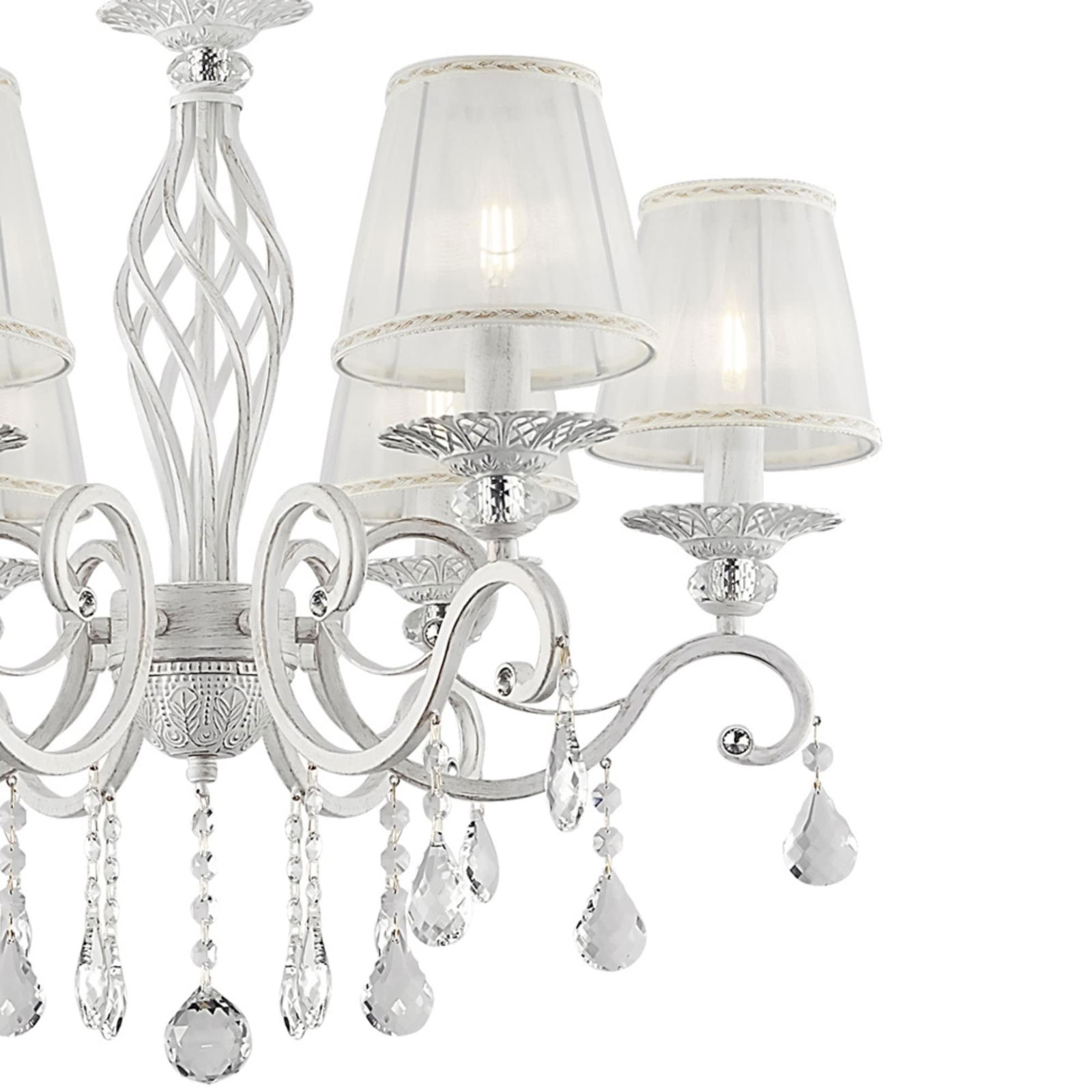 Grace 6 Light White & Gold Chandelier, Metal, Fabric Shades, Crystal Glass, 63cm Wide | 5 star | 0% | |