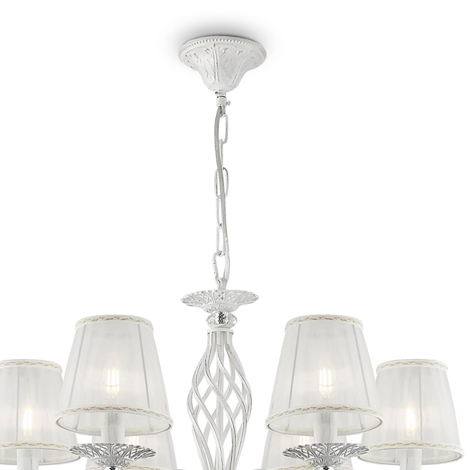 £566.00Grace 8 Lamp White & Gold Chandelier, Metal, Fabric Shades, Crystal Glass, 72cm Wide