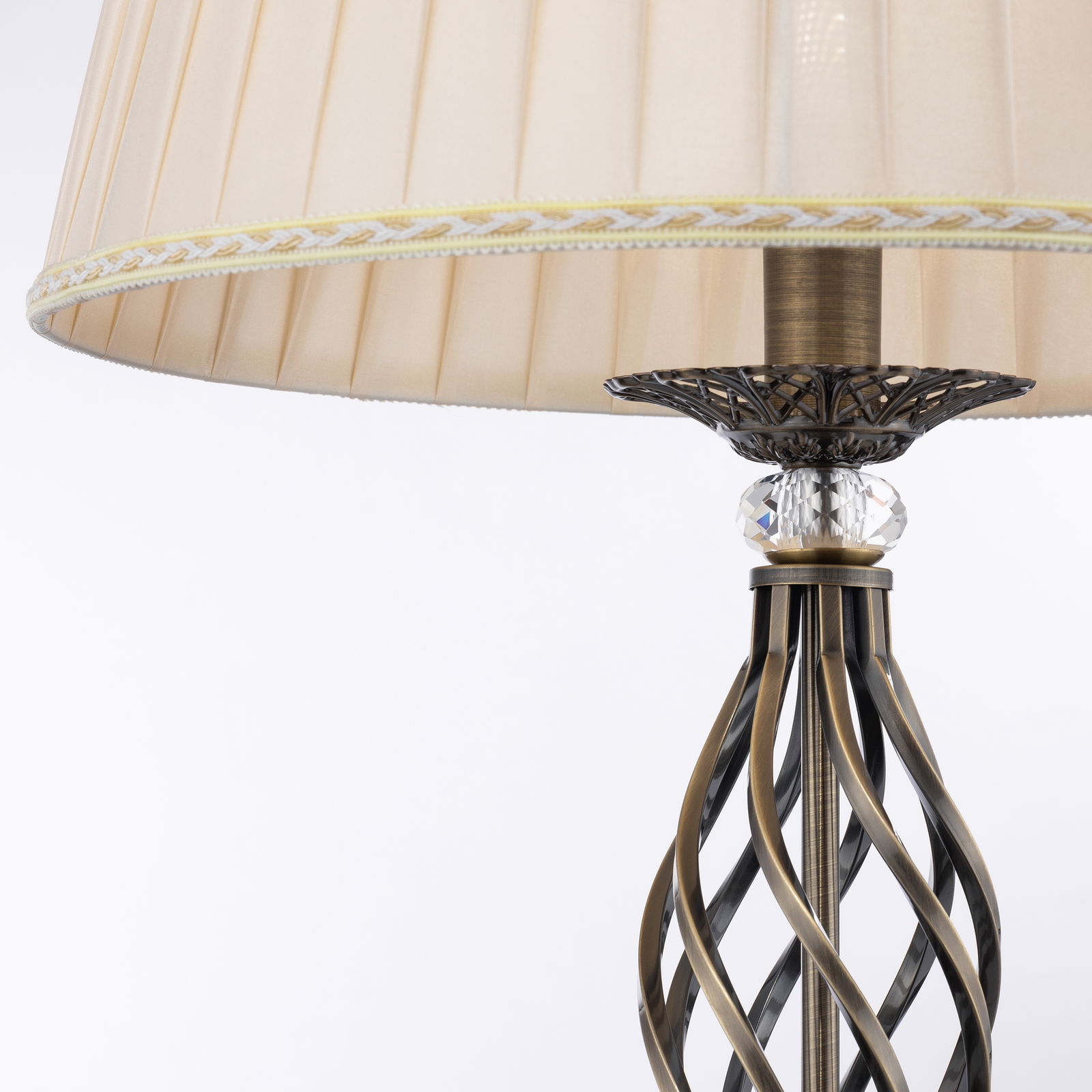- Beige pleated fabric shade included.