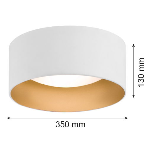 Hito Flush Ceiling Lamp, White & Gold Steel Drum Shade, 2 Light, 35cm Width