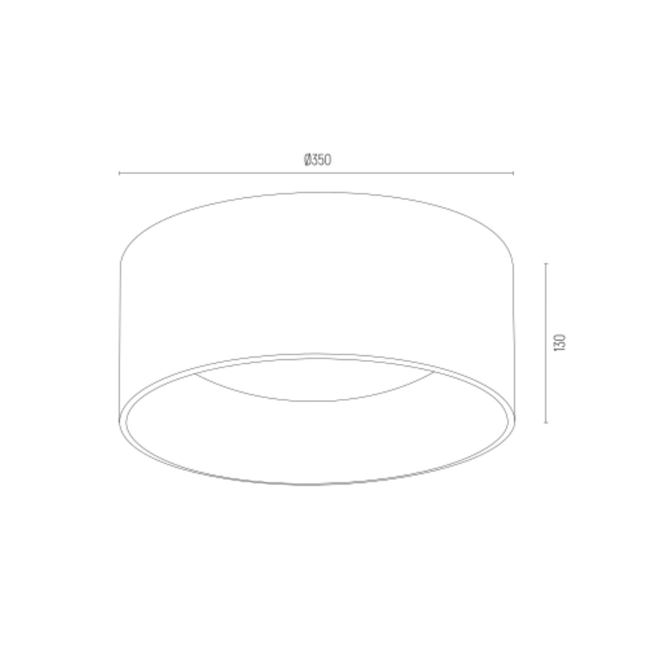 The White Hito Flush Ceiling Lamp has a white steel drum shade with a gold interior. The drum sits close to the ceiling with an opening at the bottom, which inside holds a round glass diffuser which covers the lamp holders.