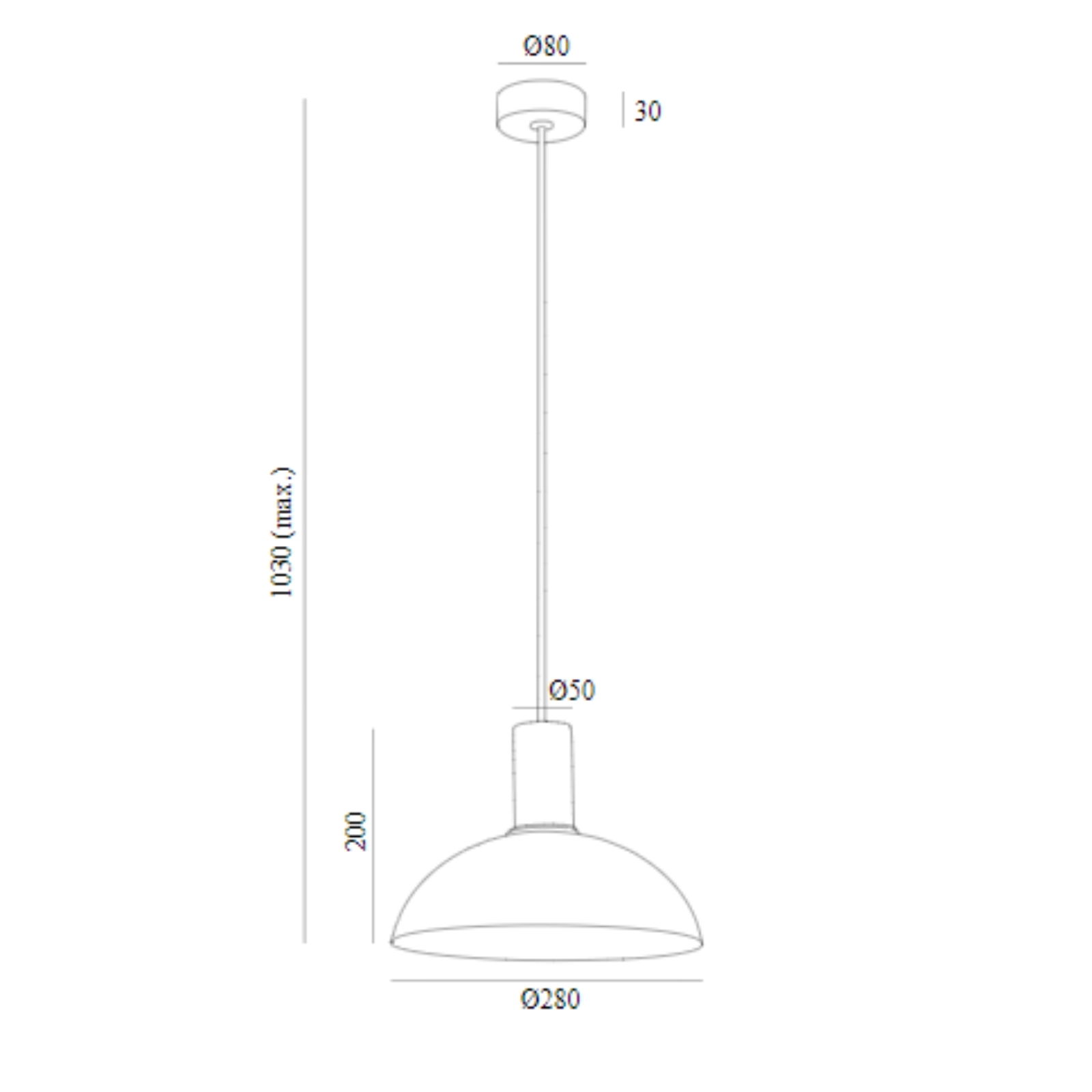 - It hangs down 103cm from the ceiling using an 80cm cable. This cable can be shortened at the installation stage.