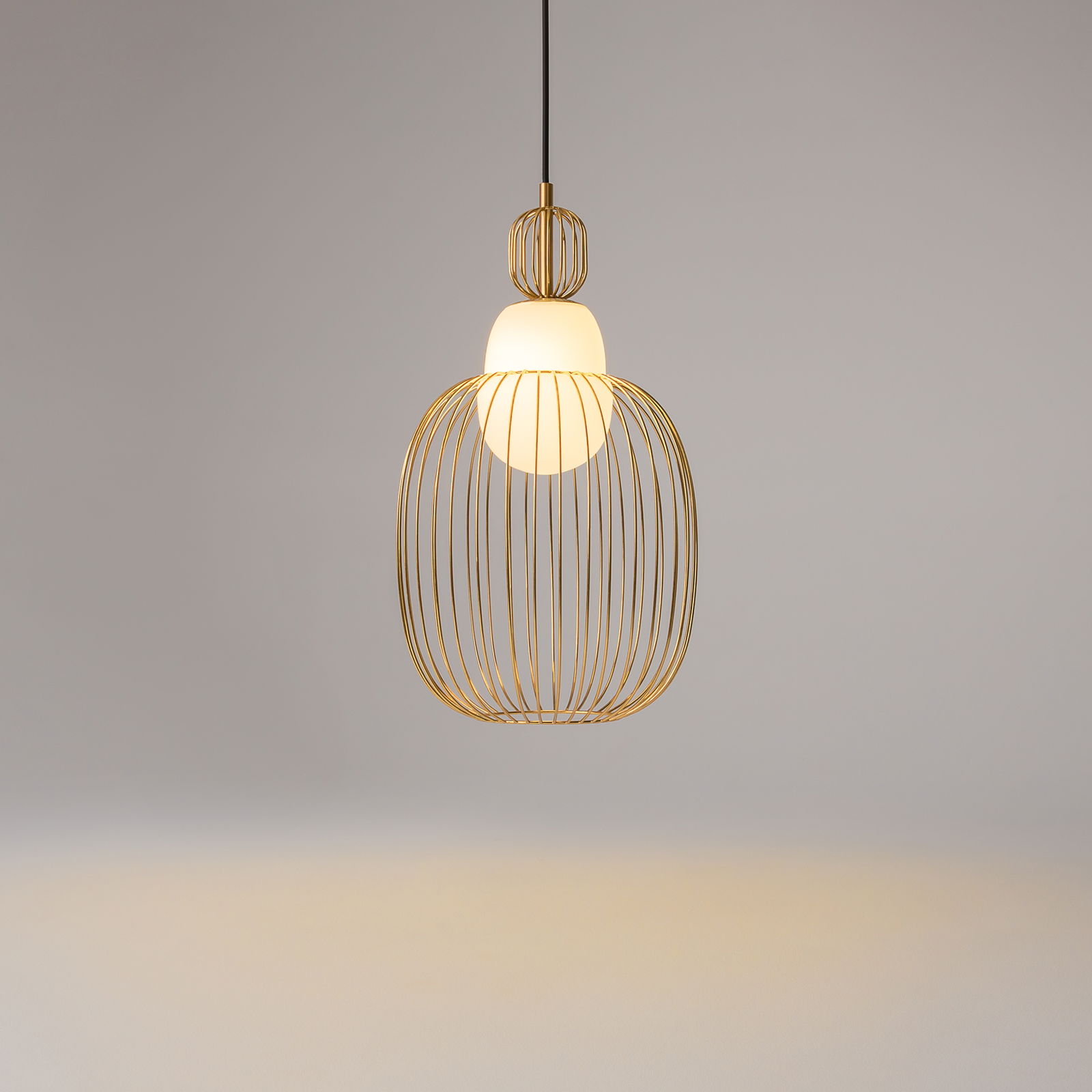Levitation Small Brass Pendant Lamp, Opal Glass, Metal, 25.8cm Diameter