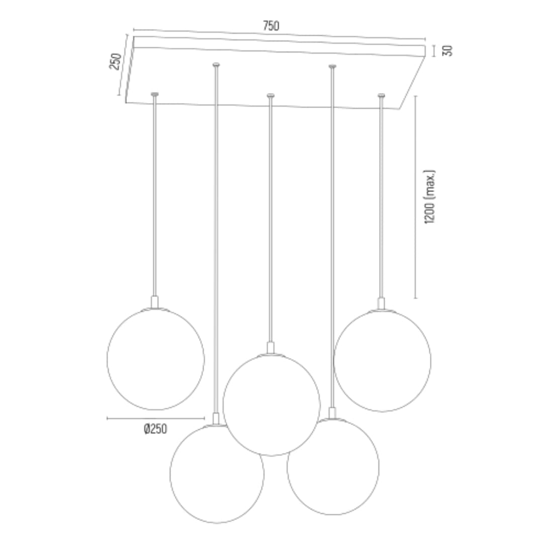 - The Loma 5 Light Pendant Lamp extends 148cm from the ceiling to the lowest point, creating a dramatic drop. This can be shortened if required