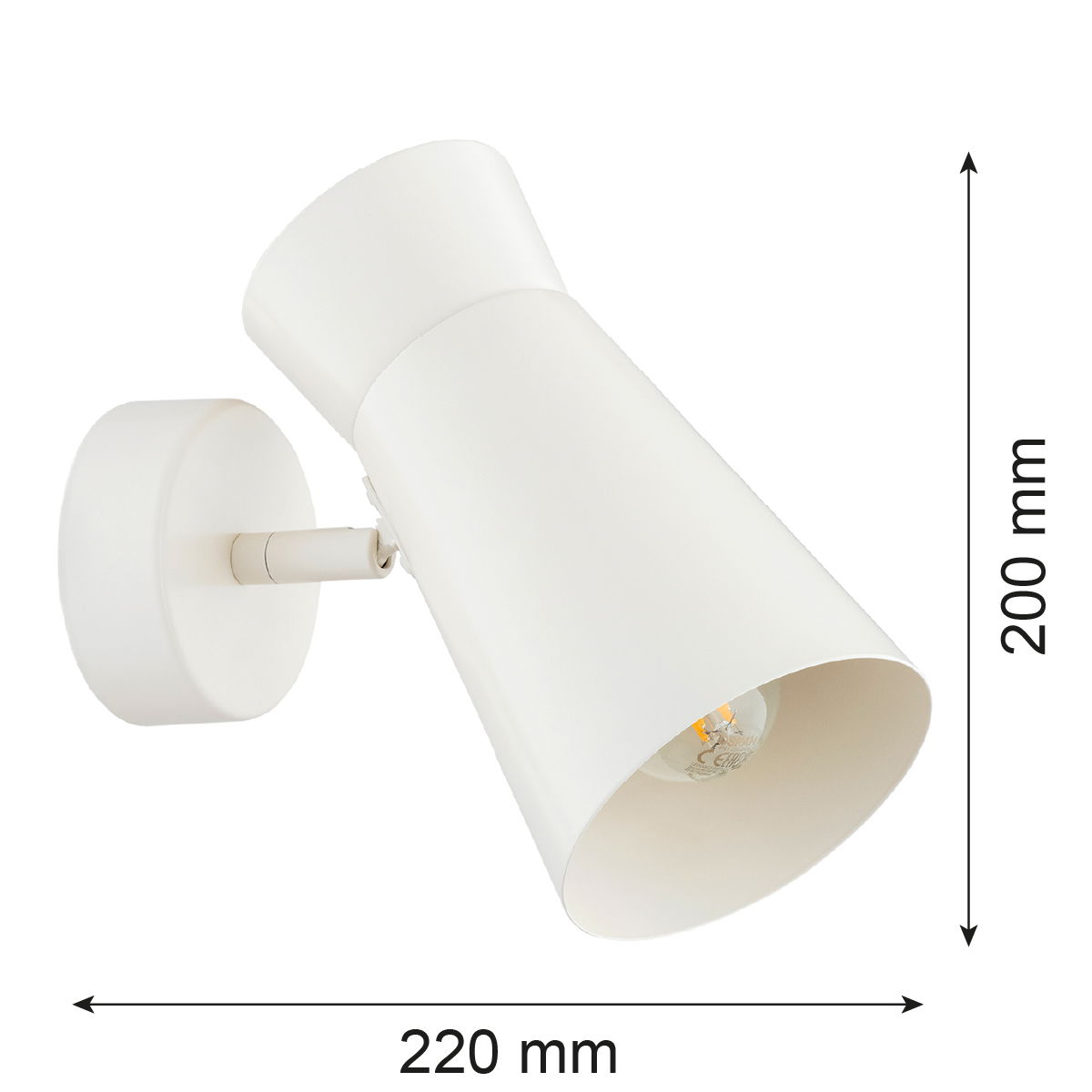 The white Lori Wall Lamp is 20cm tall with a white finish covering the steel construction both inside and outside the cone-shaped shade.
