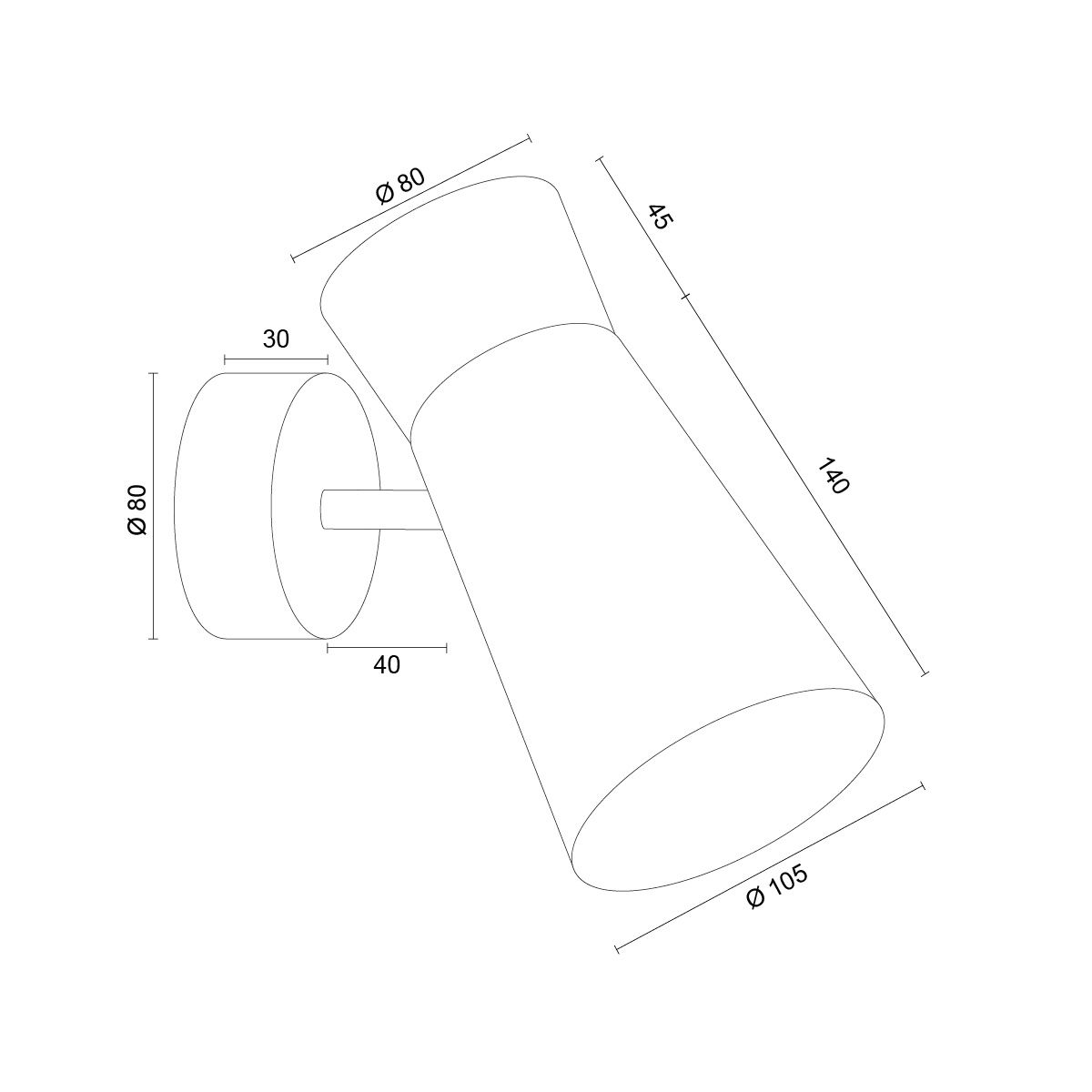 Lori White Wall Lamp, Directional Shade, 1 Light, 10cm Width