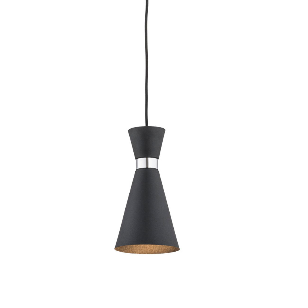 The Luke black pendant lamp has a cone-shaped steel shade in black with chrome detailing. It comes with an 80cm black fabric cable which can be shortened at the installation stage, and if you require a longer cable length
