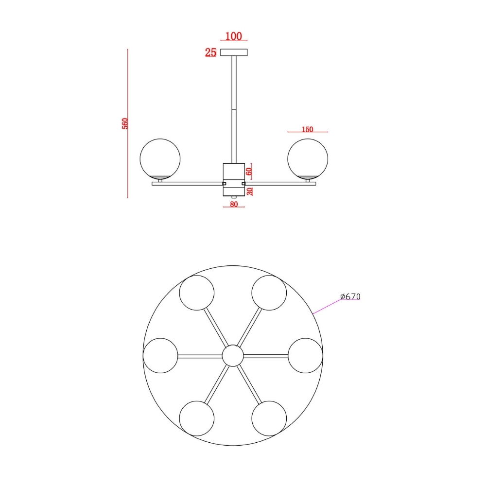 - Takes 6x ES E27 golf ball light bulbs, 60W maximum each.