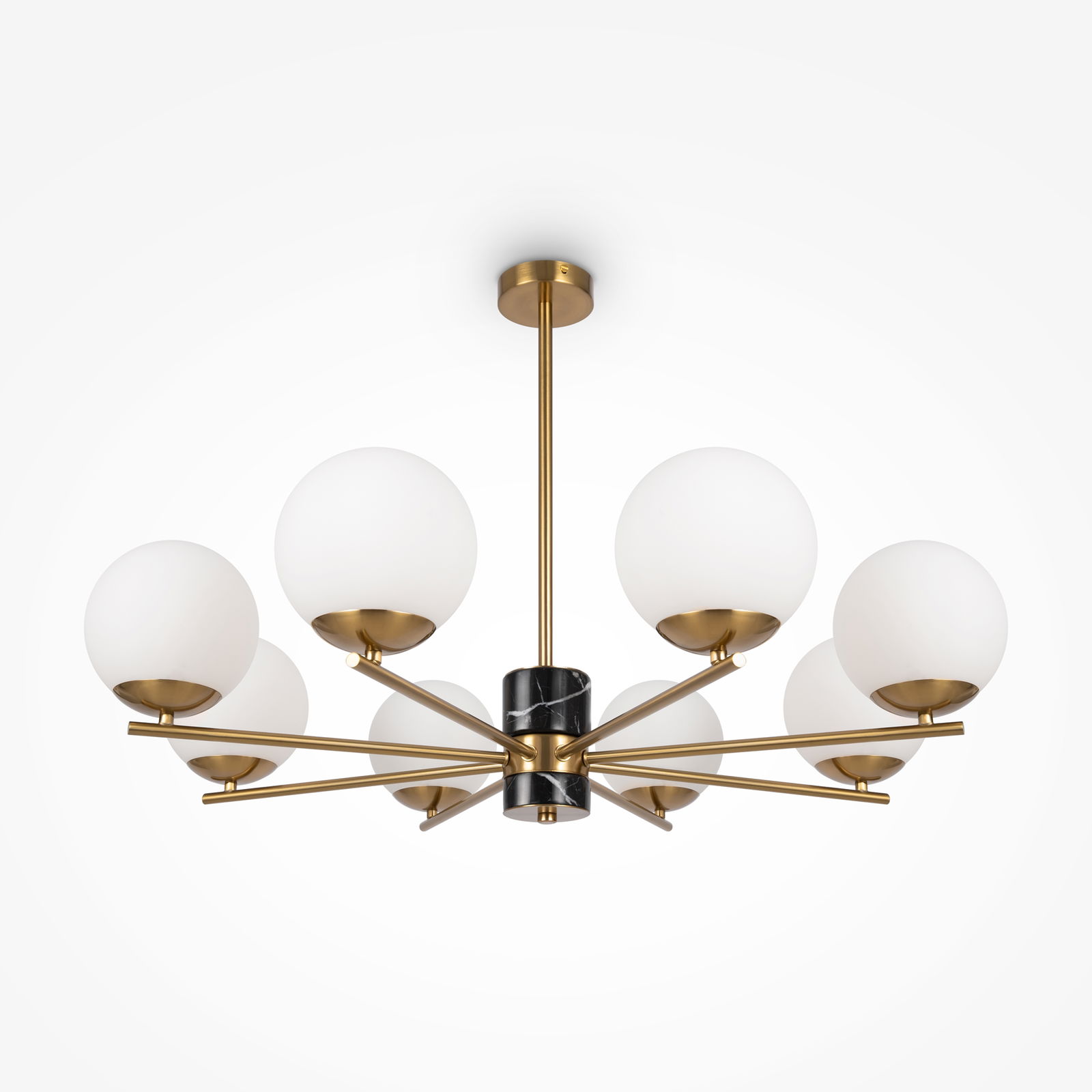 Marble 8 Light Chandelier, Brass Metal, Opal Glass, 81cm Wide
