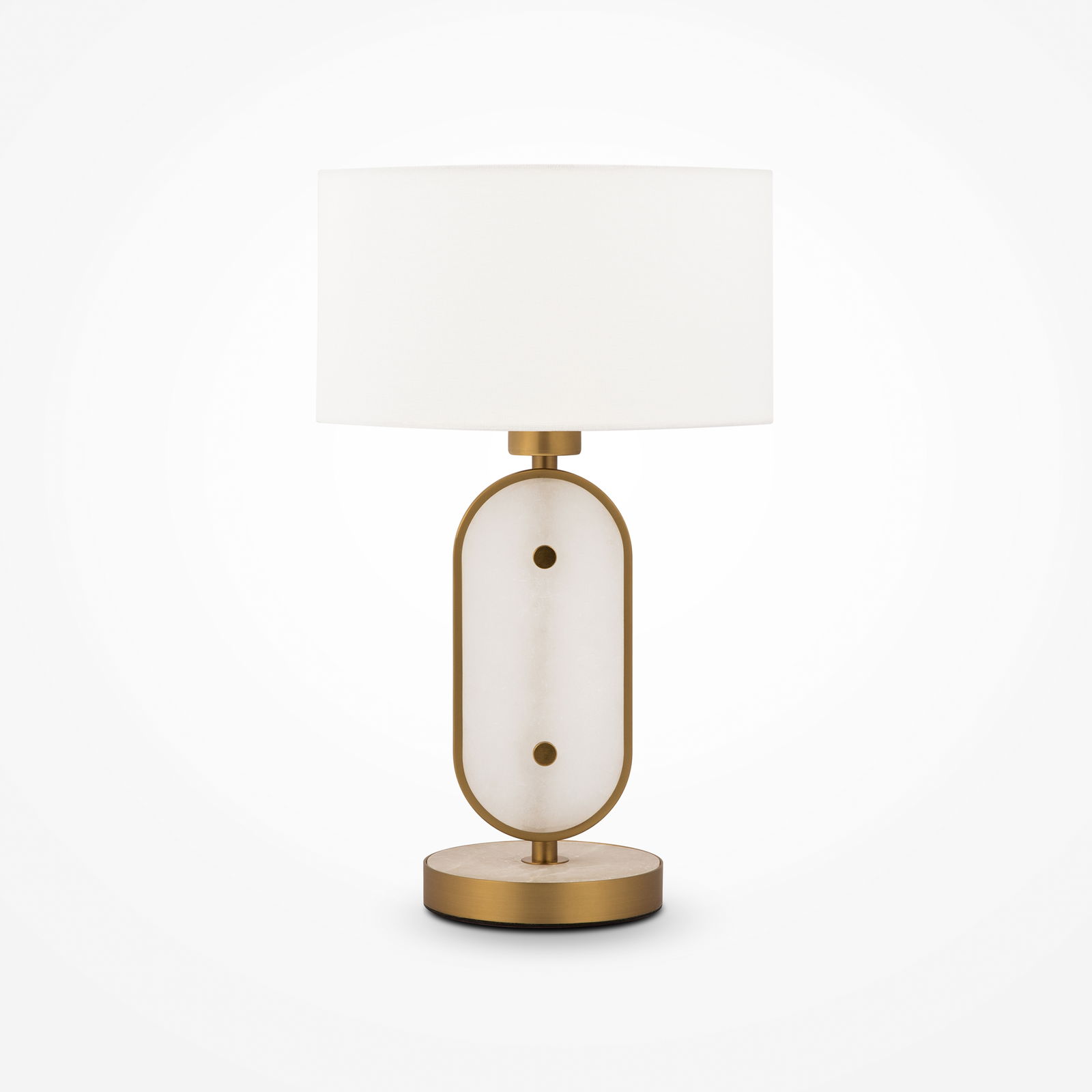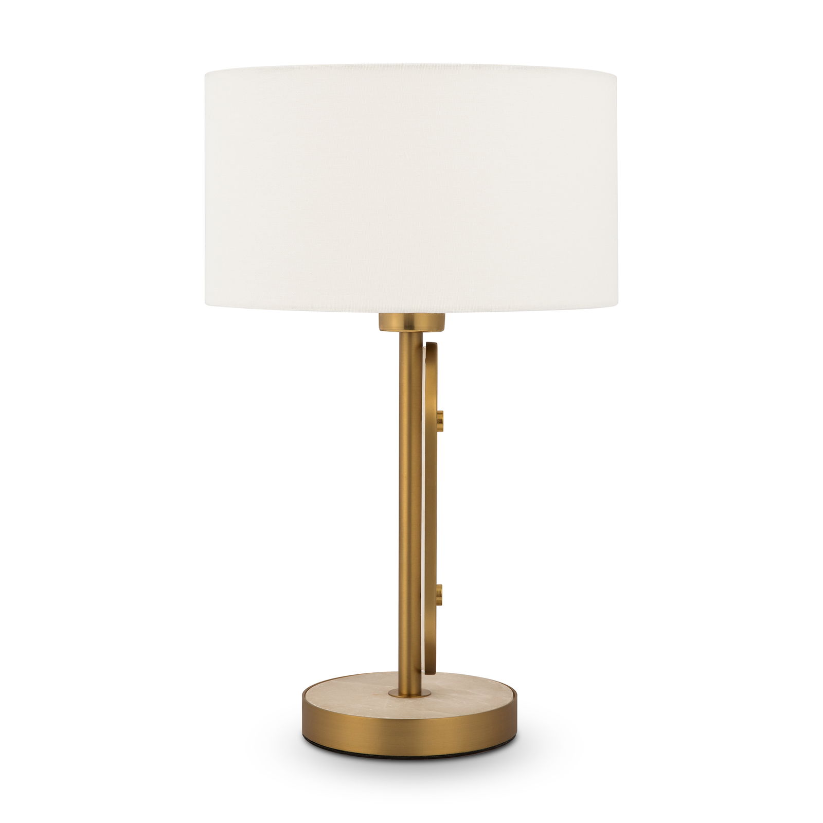 Marmo Alabaster Table Lamp, Brass Metal, White Fabric Shade, 44cm Height