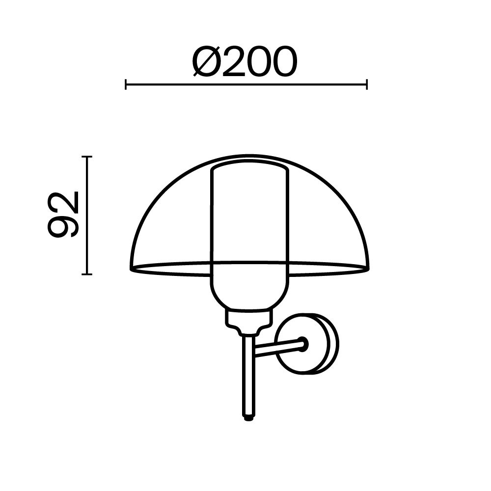 The Memory Mushroom Wall Light is 22cm wide with a clear glass dome shade which sits on top of a white cylinder glass shade which covers the light bulb. It also includes an on/off switch, which is located on the bottom of the stem arm, which can be viewed in the product pictures.
