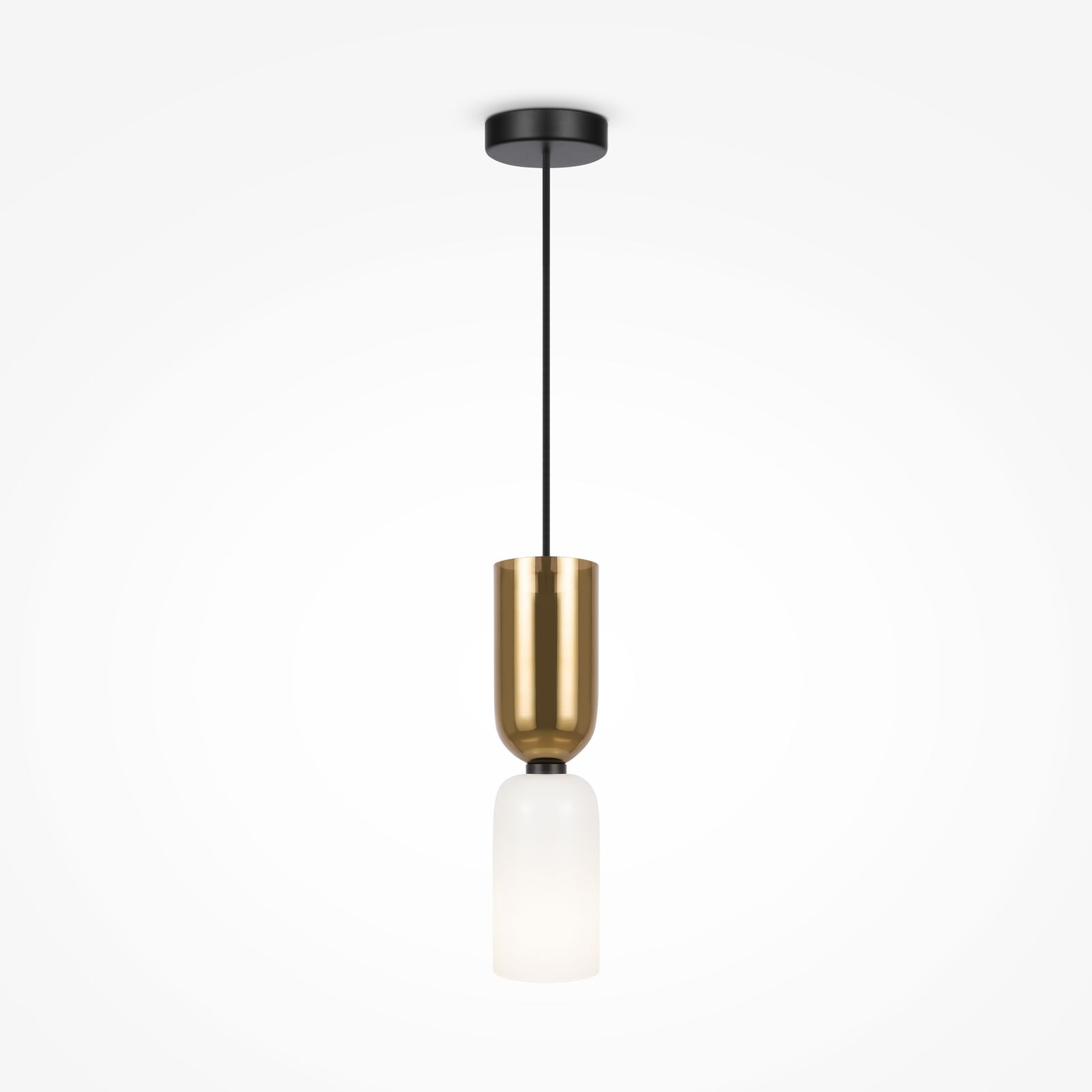 Memory Pendant Light, White & Gold, Glass, Metal, 1 Lamp, 8cm Wide