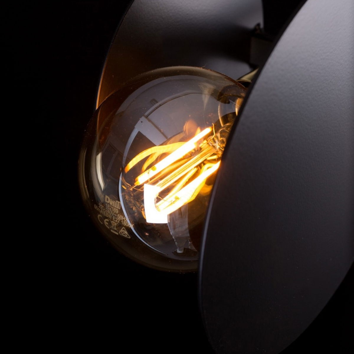 - The two white glass globes stand out against the black metal.
