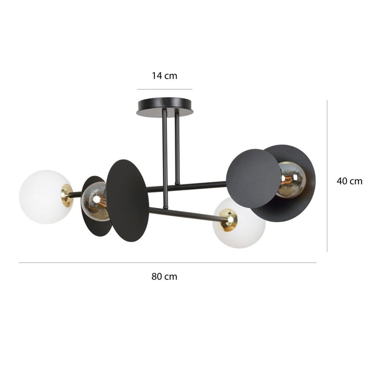 - The black ceiling plate is 14cm x 14cm and sticks out only 3cm from the ceiling