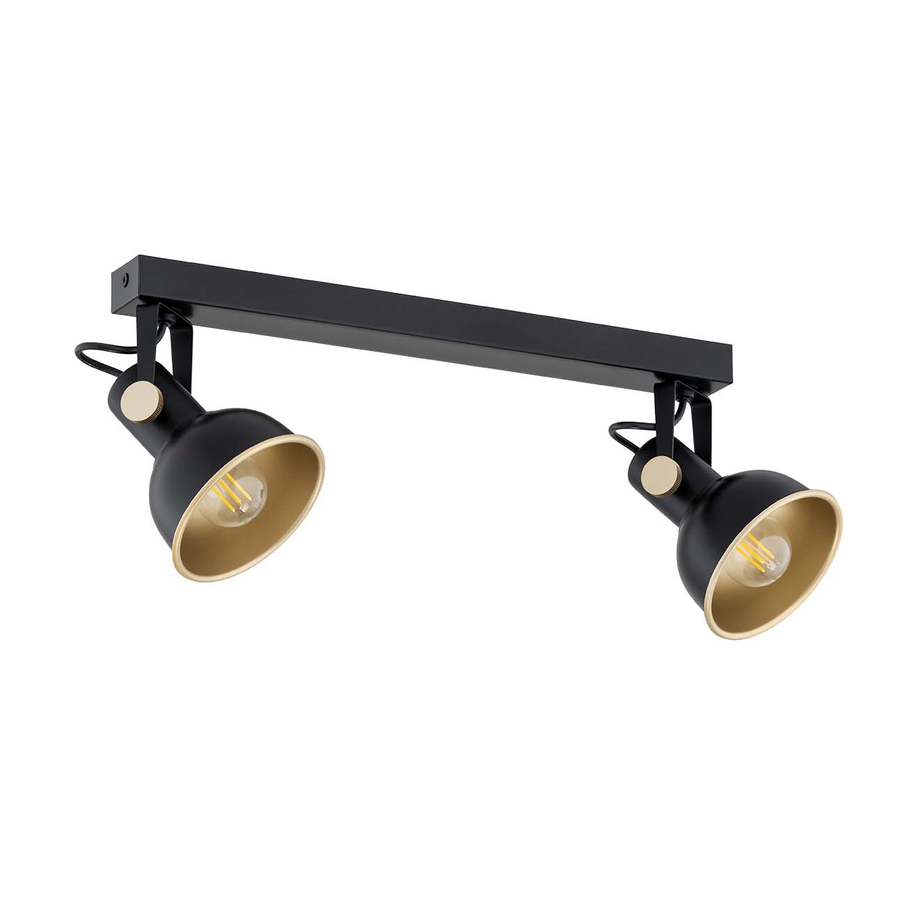 The Nora 2 Light Ceiling Spotlight comes with a black steel frame and a gold inner shade in a linear bar design. It can be mounted on both the wall and ceiling and has two directional adjustable heads so you can direct light output.