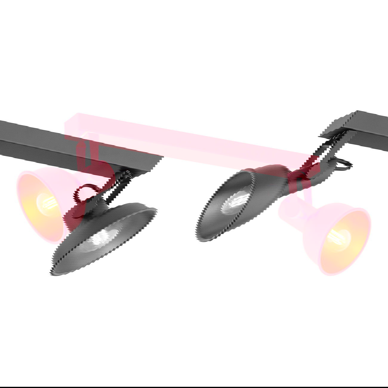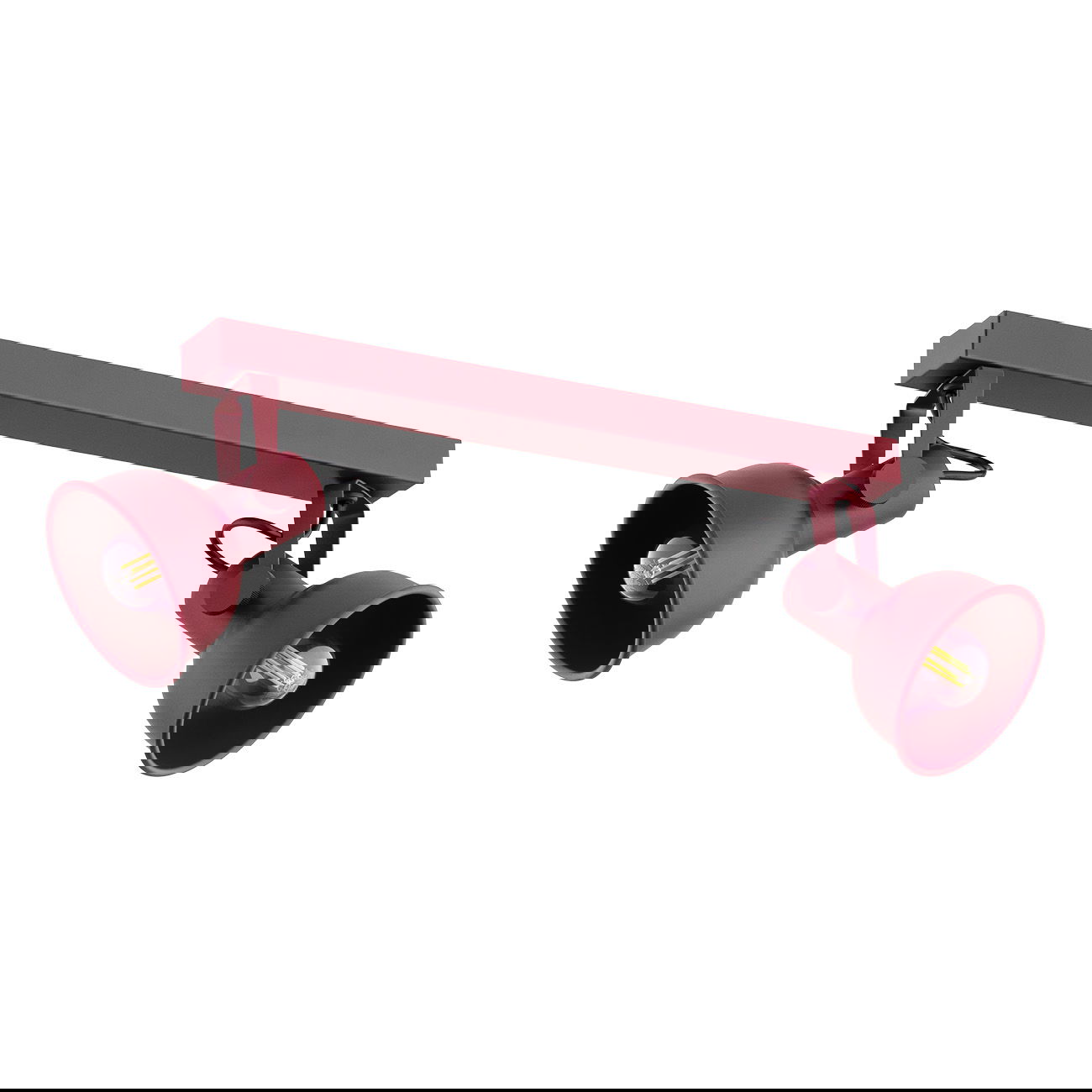 The Nora Red Ceiling Light is a 2-light adjustable spotlight with a compact red bar and two heads that you can move around. It works well in smaller rooms or over specific areas where you need targeted lighting. You can install this on either the ceiling or use as a wall light.