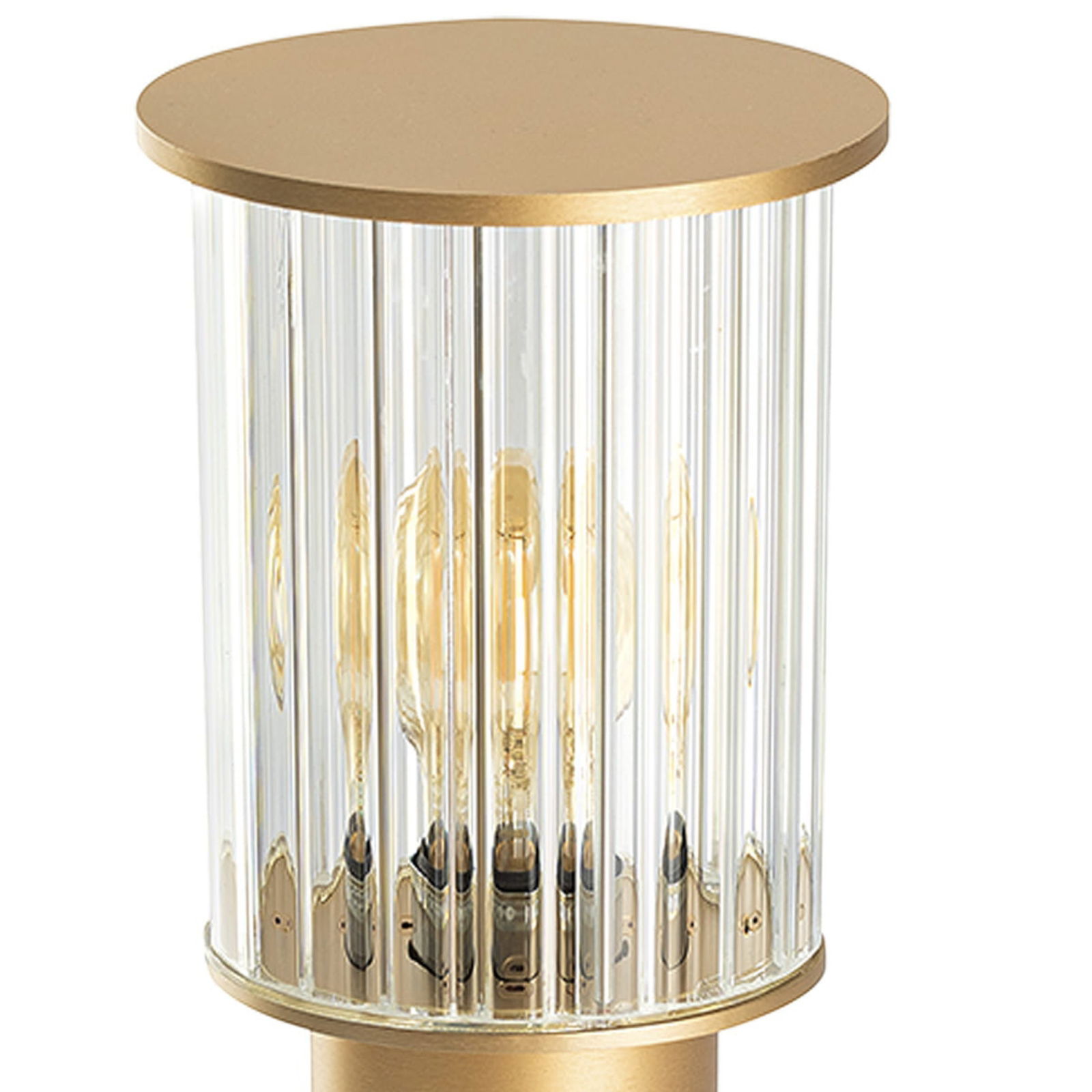 Nordfor Medium Outdoor Bollard Lamp, Gold, IP44, Ribbed Glass, 52cm Height