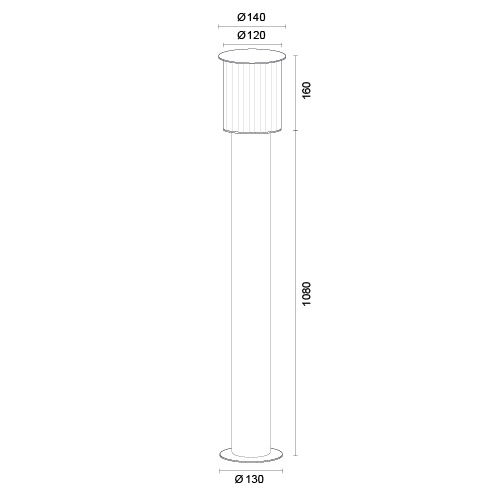 - The outdoor bollard light is 124cm tall overall.