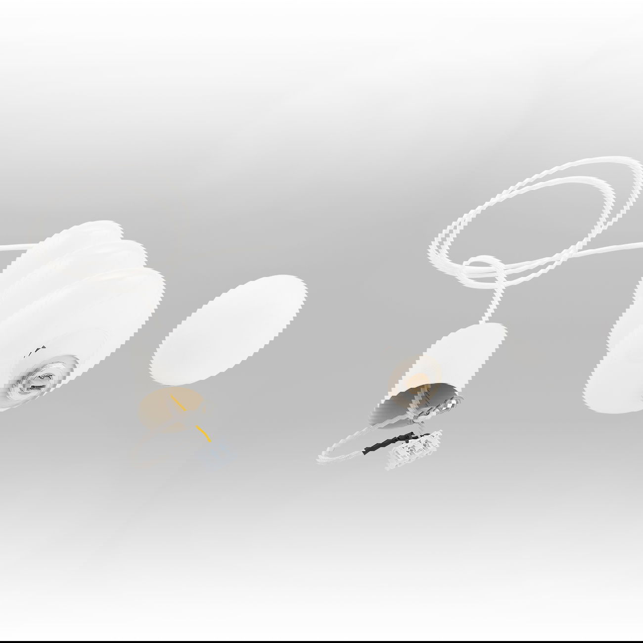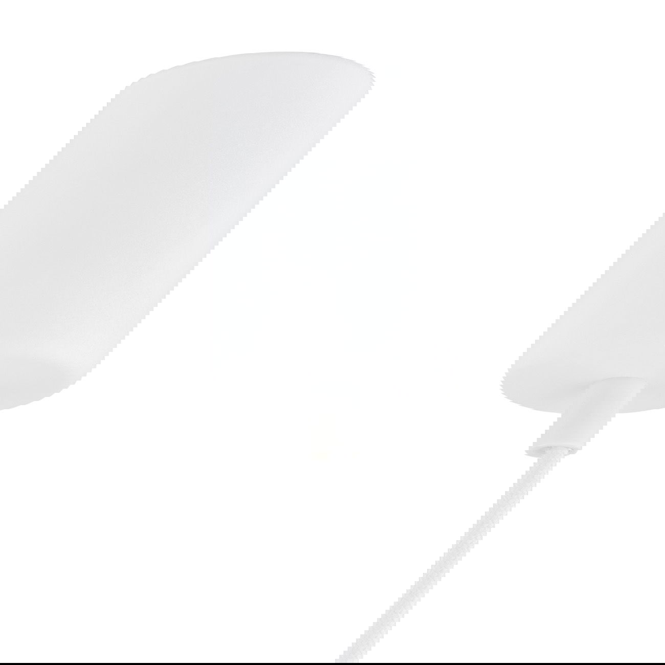 - It comes with a white cable covered in fabric, and the white ceiling plate is made of steel.