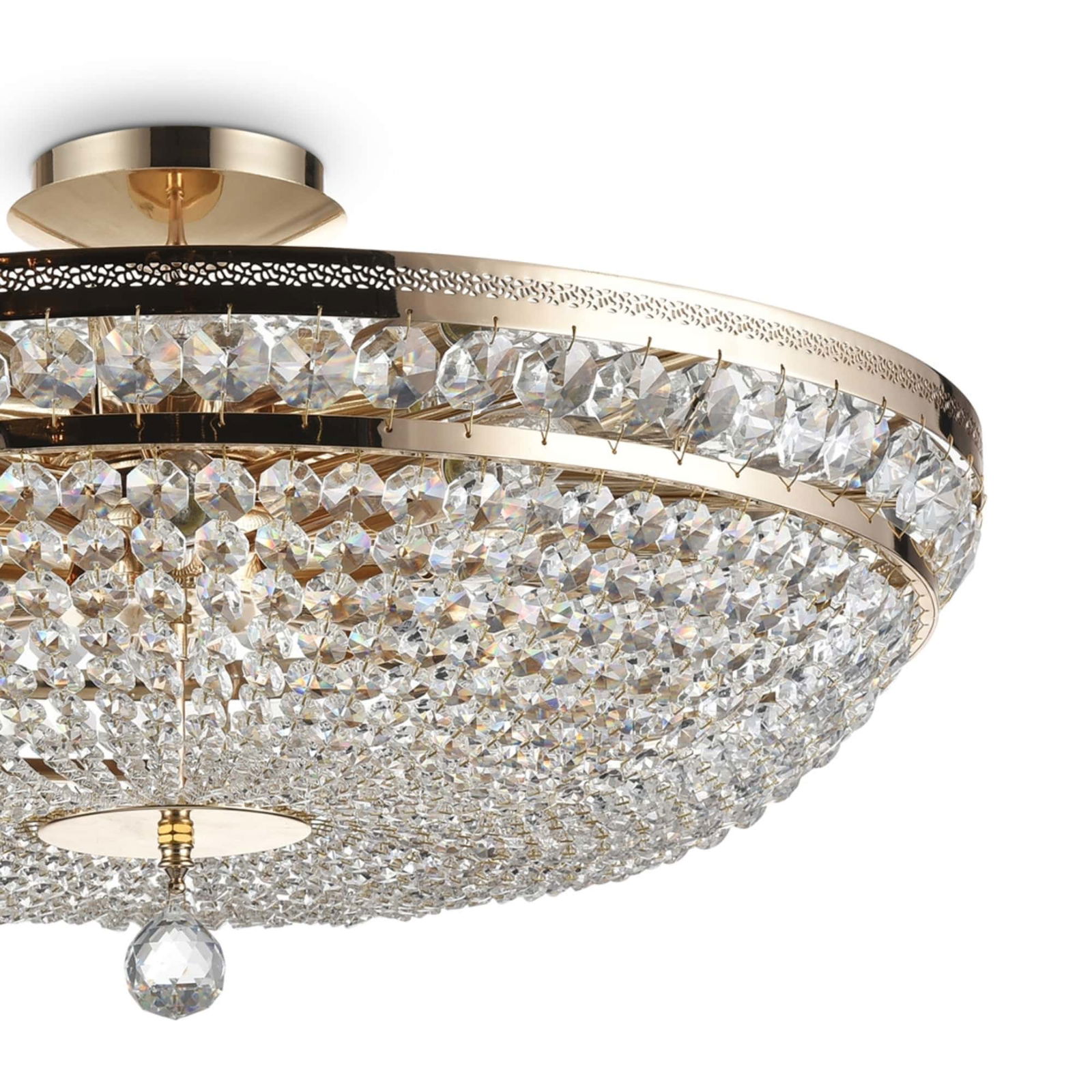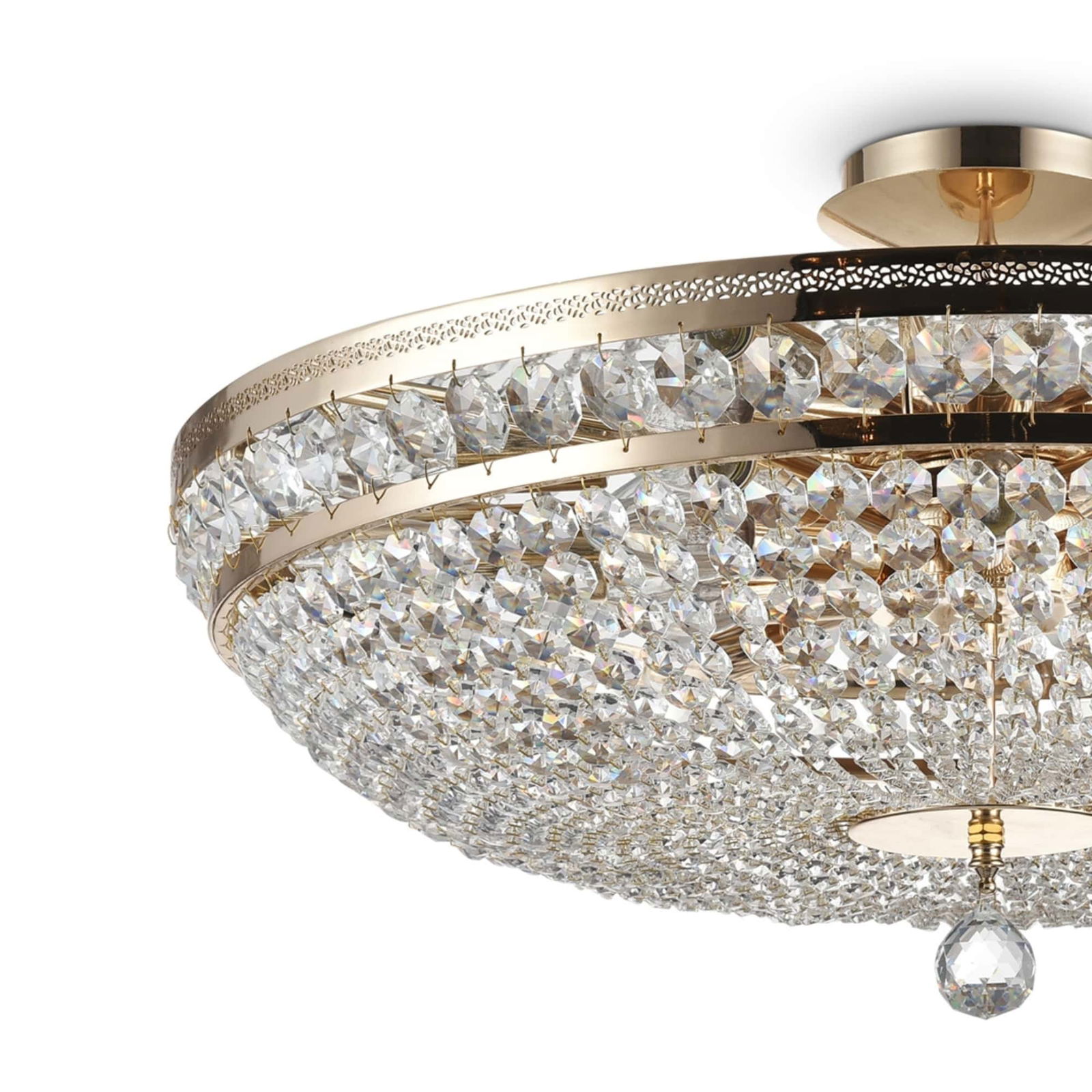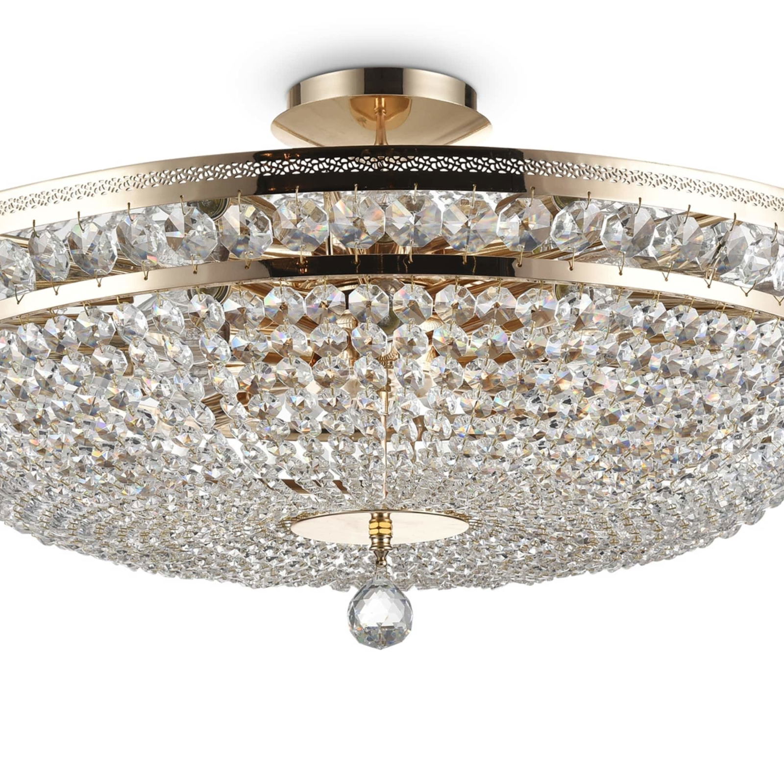 Palace 14 Light Ceiling Lamp, Gold Antique Metal, Crystal Glass, 80cm Wide