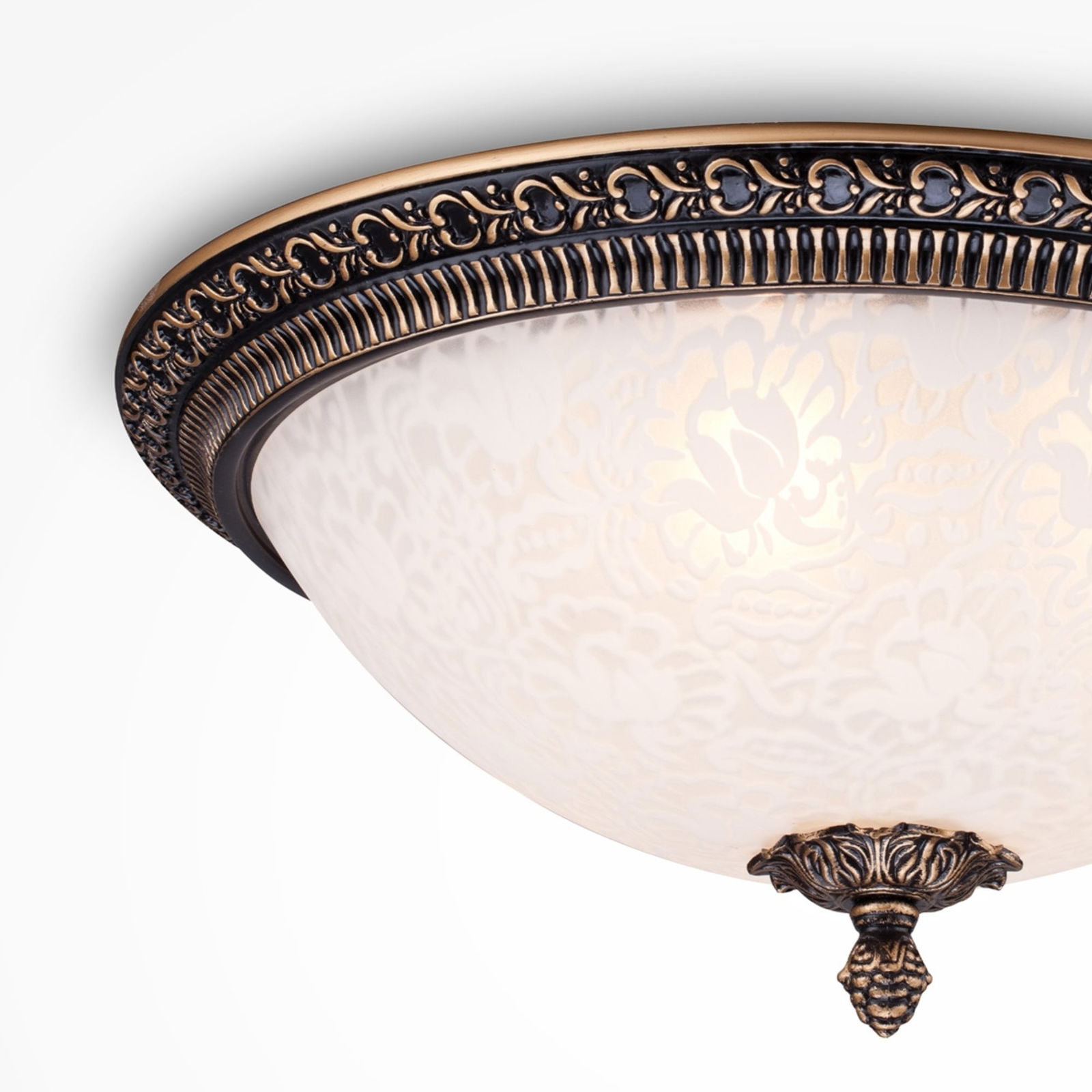 Pascal Bronze Ceiling Light, Flush Fitting, 3 Light, Metal, Glass, 37cm Wide