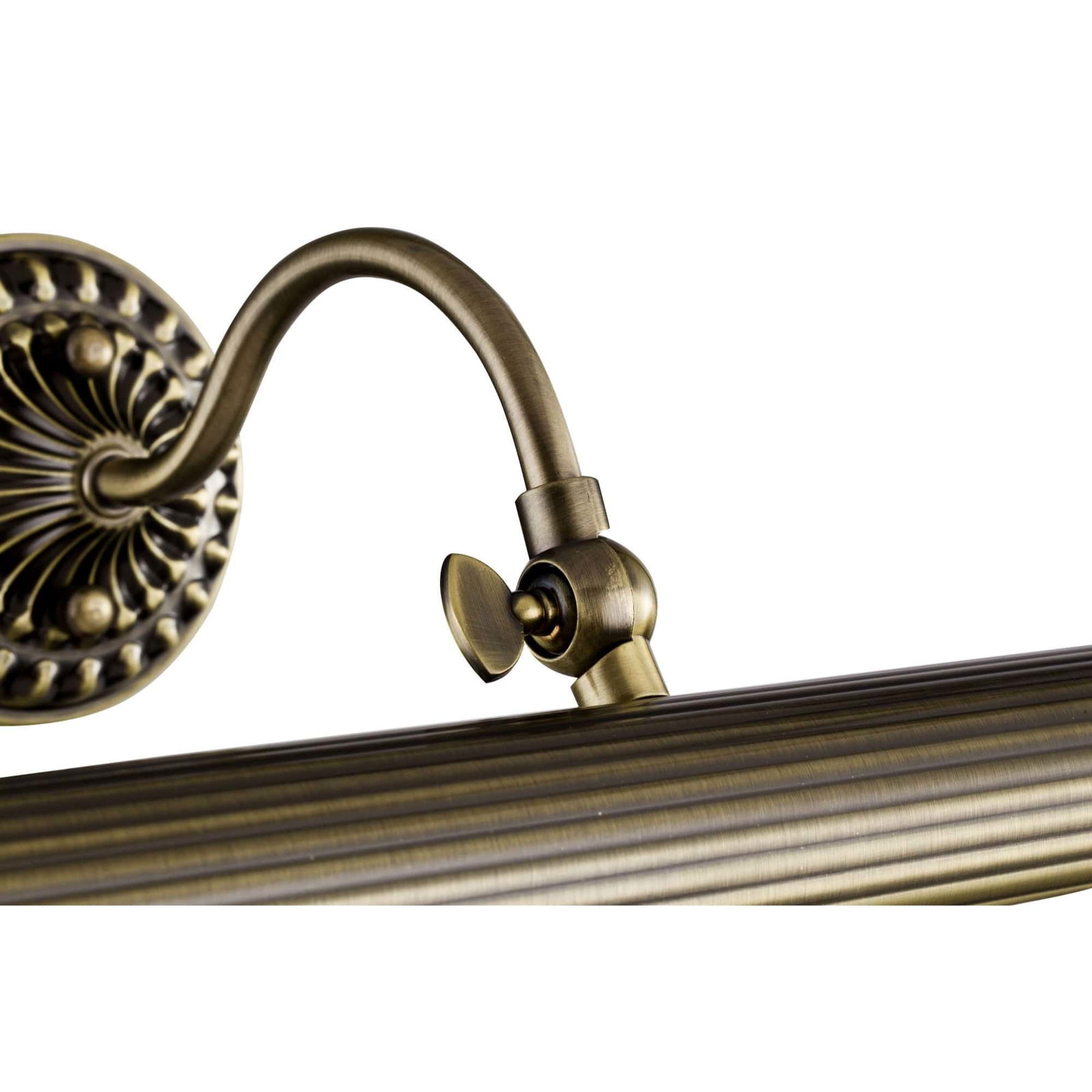 The Renoir Bronze Picture Lamp is 35.9cm wide with an antique bronze finish. The picture light has ribbed metal detailing and an adjustable shade which can be angled by using the screw section on the swan neck arm.