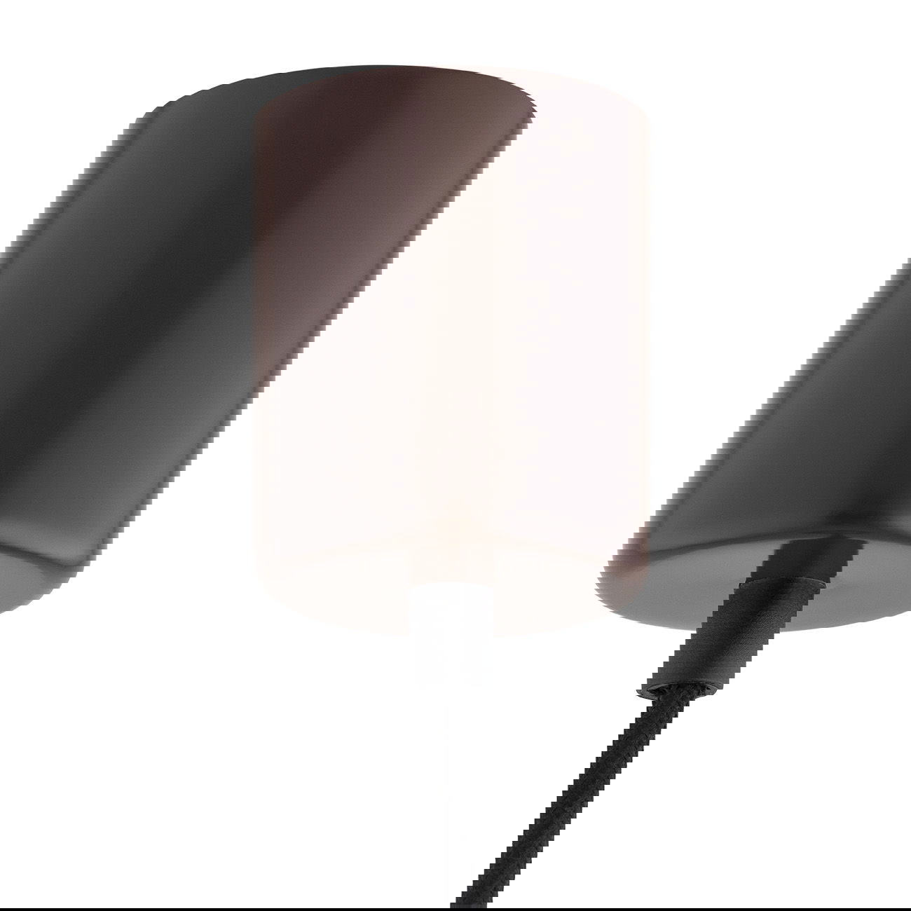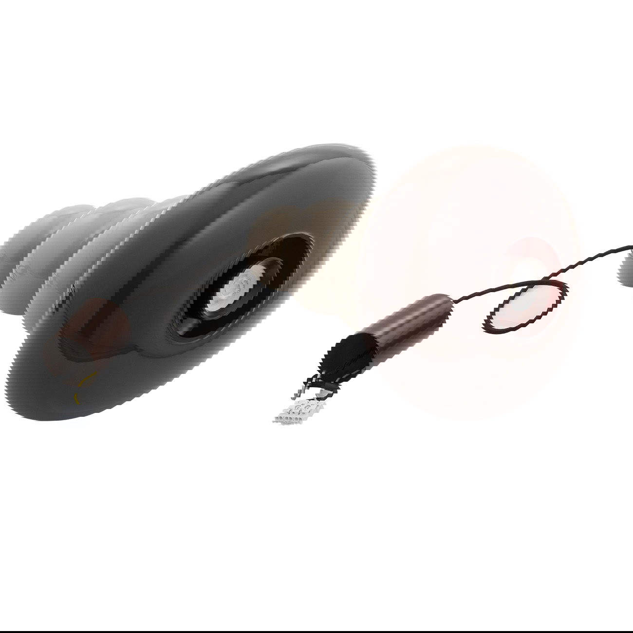 - Steel ceiling rose with a brown finish and black fabric cable.
