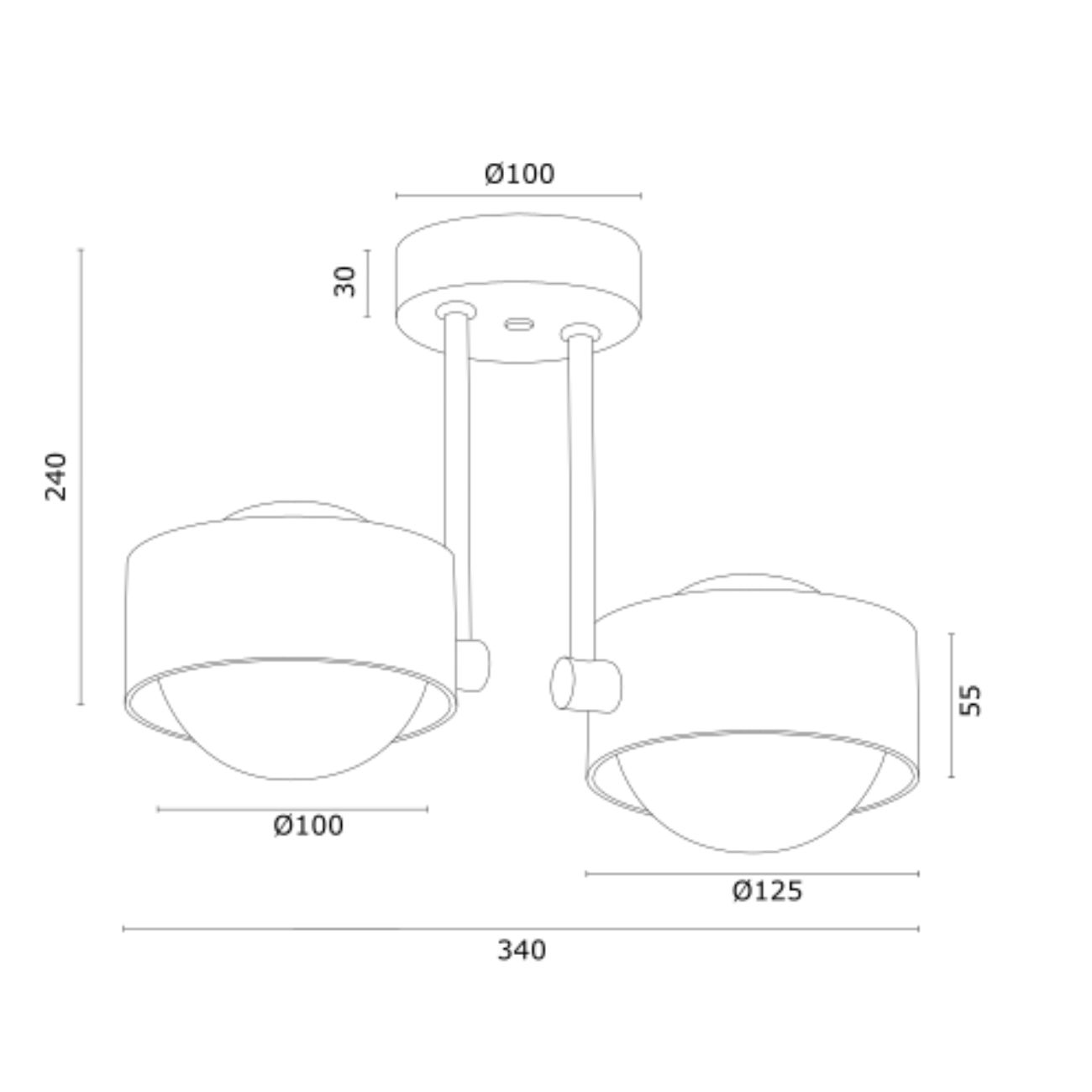 The Two Light Blue Simo IP44 Ceiling Lamp has two adjustable arms holding navy blue cylinders with opal glass globes. The light fixtures’ shades can be pivoted in different directions, and due to the IP44 rating, they can be used in a bathroom.