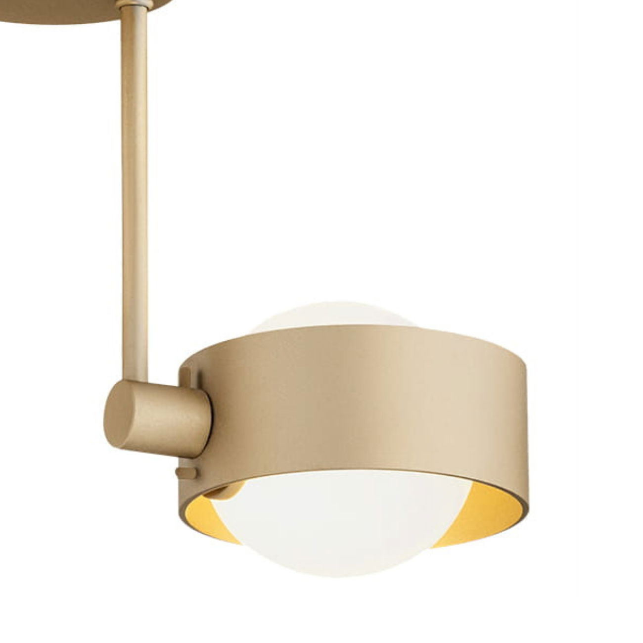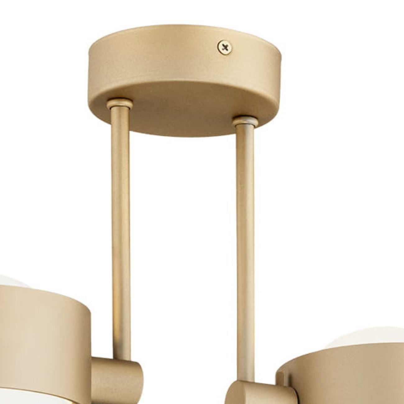 The Gold Simo Two Light IP44 Ceiling Light has two shades which can be adjusted and directed independently in different directions on gold steel arms. Due to the IP44 rating, it can be used as a bathroom ceiling light if needed.