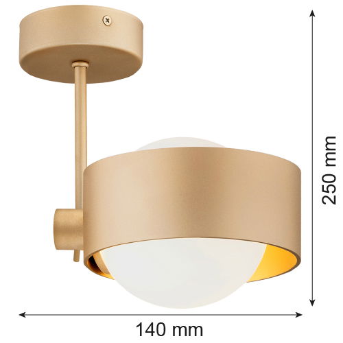 - The outer cylinder is made from steel with a matt gold finish, and the inner shade is made from opal matt glass.