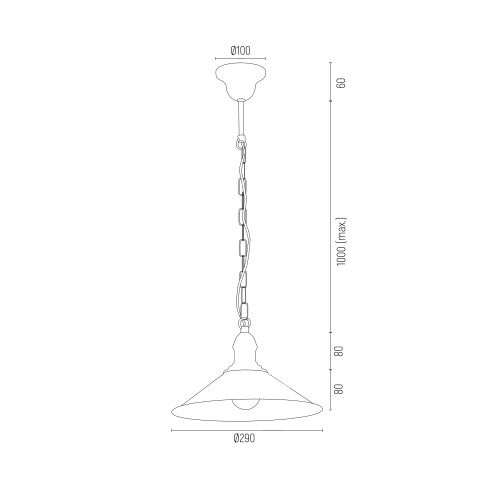 - It drops down 115cm from the ceiling to the shade tip.