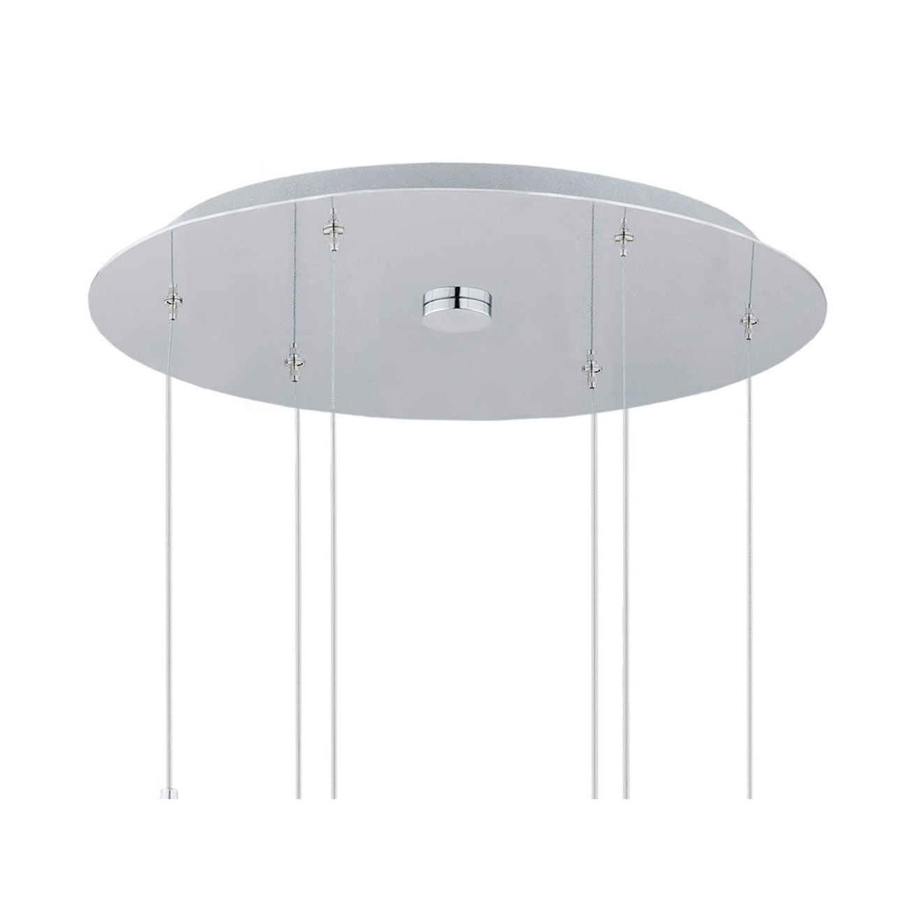 - Polished chrome ceiling plate and collars at each globe, which are made of steel.