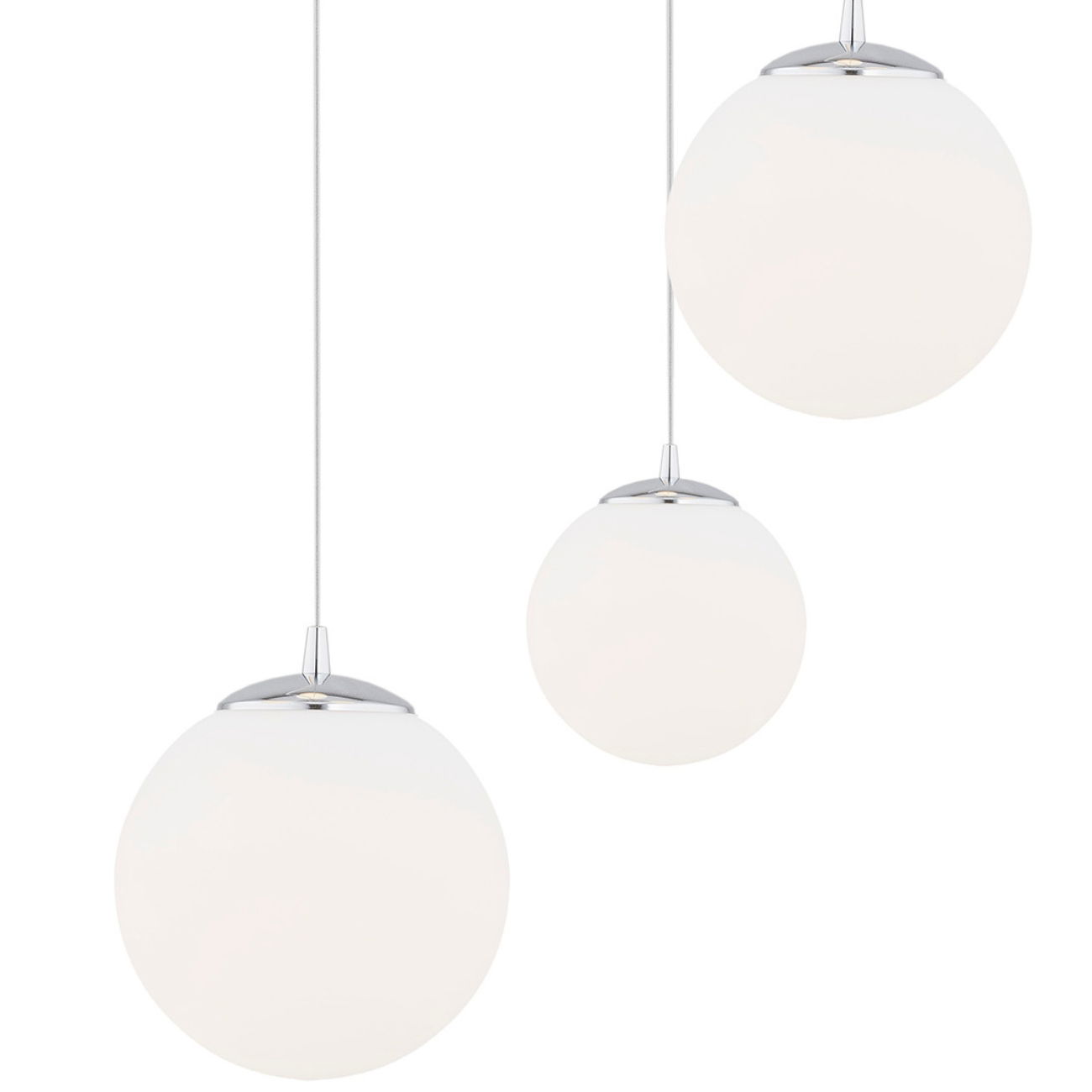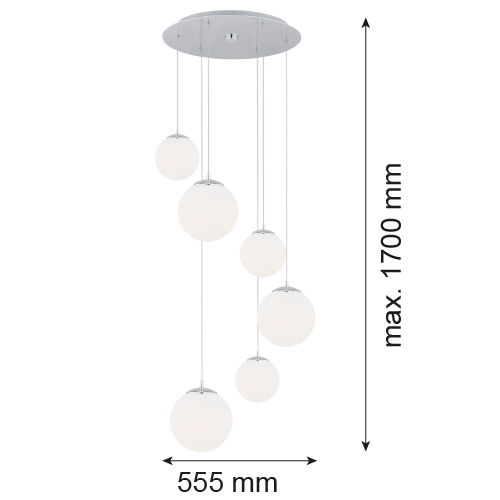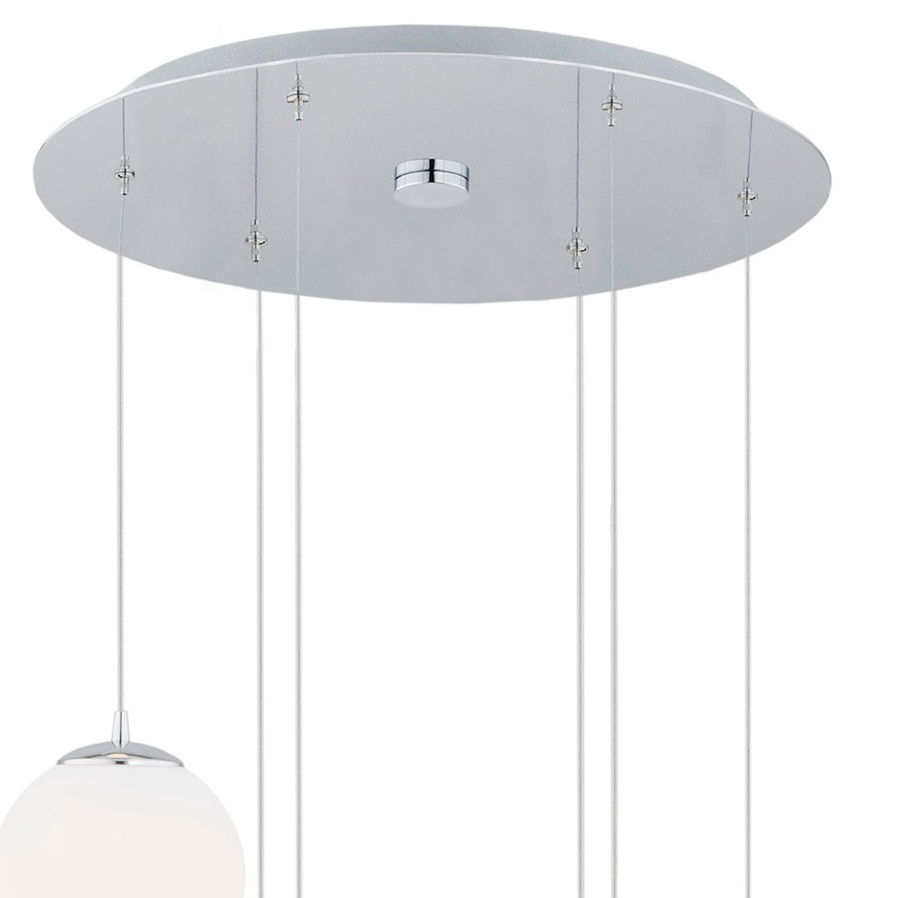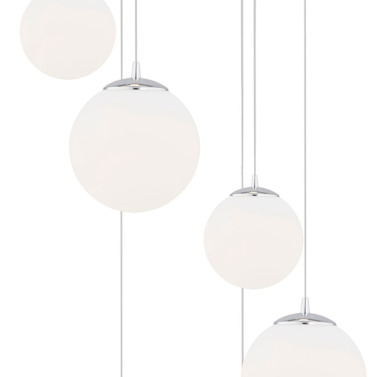 The Tica Tiered Multi-Drop Pendant Lamp has six opal glass globes which hang from a chrome ceiling plate. The six tiers drop to different heights and can be shortened and adjusted if required. If you need a longer cable length, please get in touch with our sales team with your specifications.