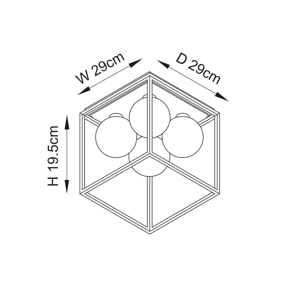 • The Vamp Ceiling Light has a projection of 19.5 cm and 29cm in width (square).